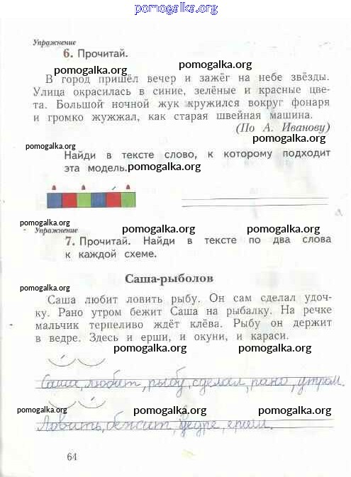 Готовые ответы - Русский язык 1 класс рабочая тетрадь Иванов С.В. - тетрадь №2. страница 64