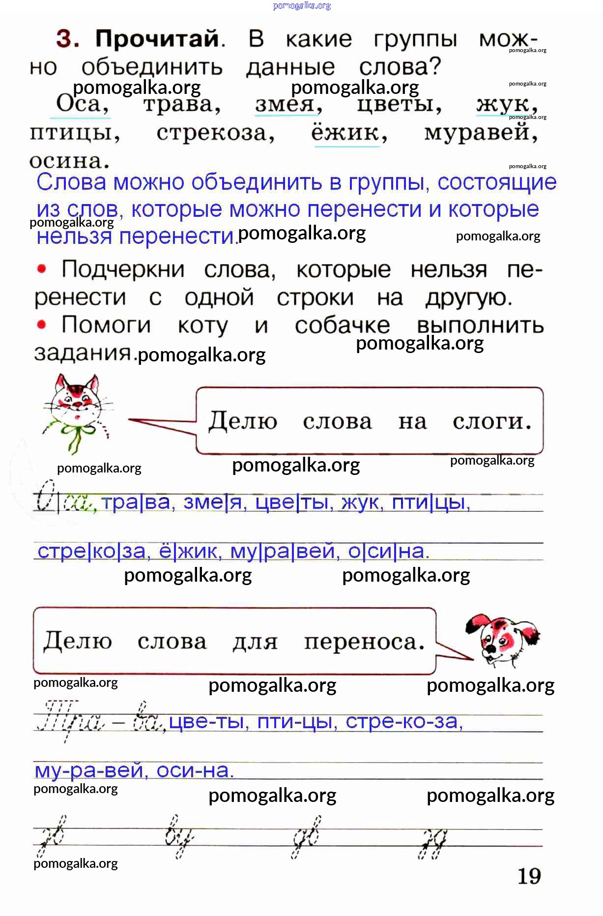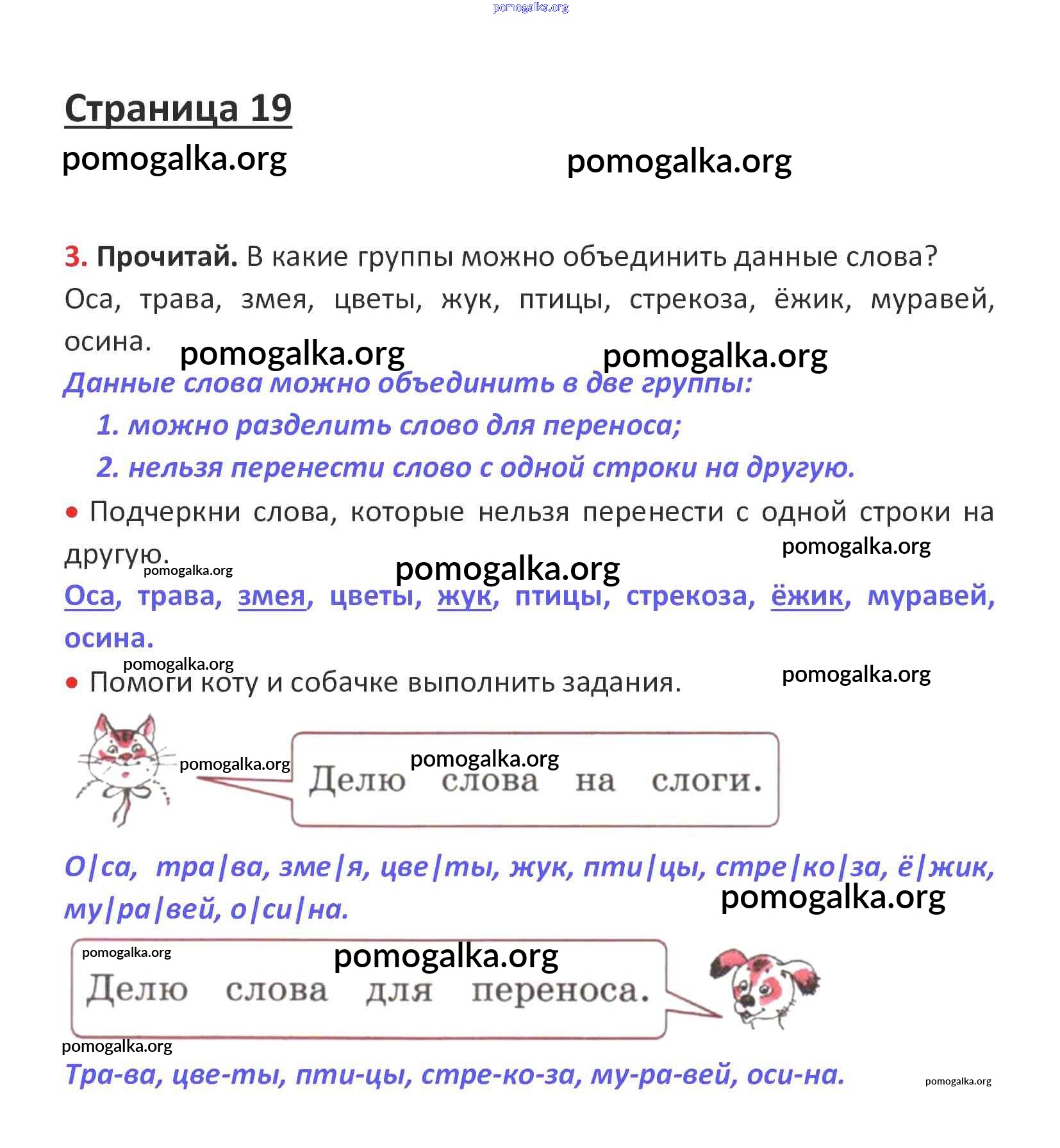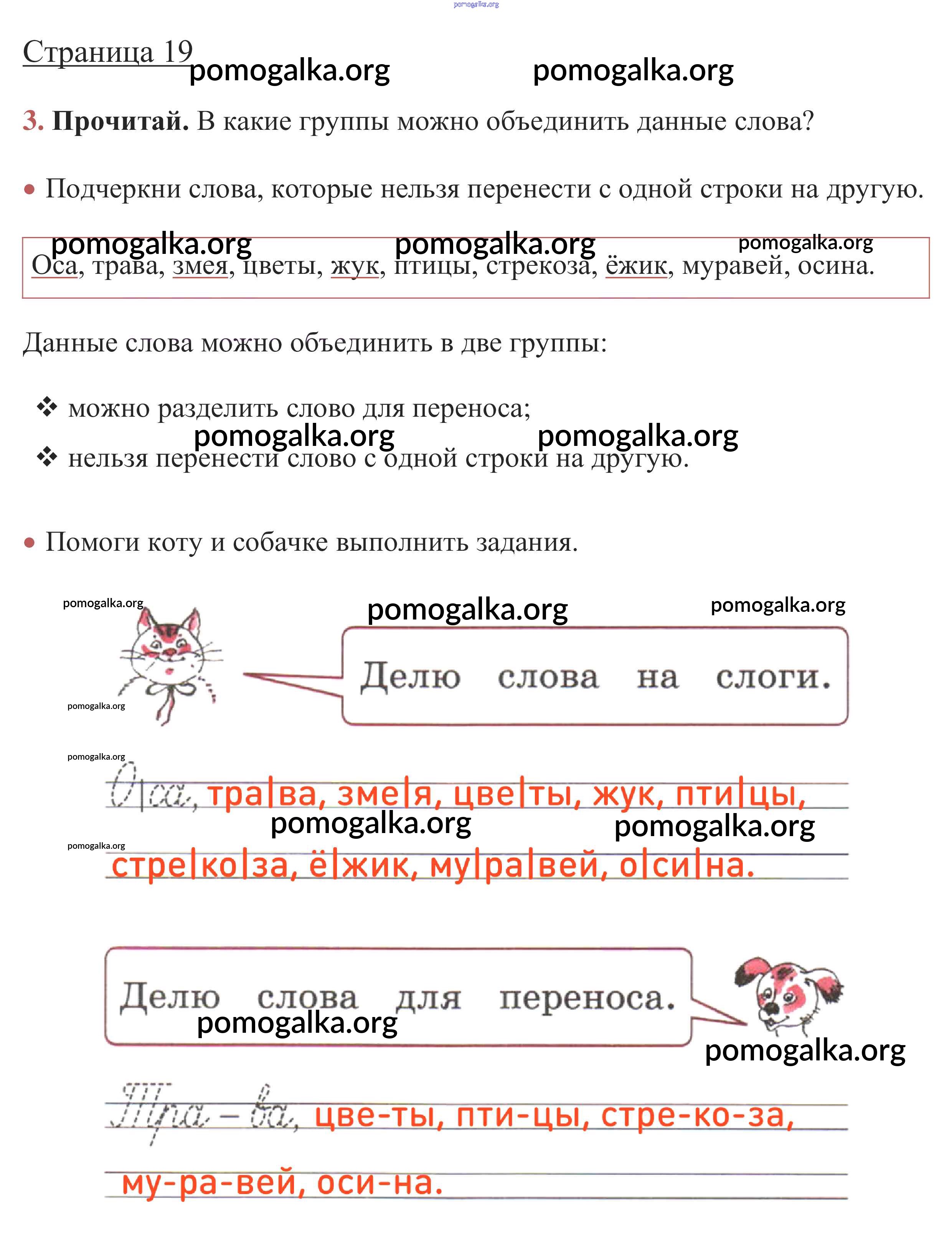 Готовые ответы - Русский язык 1 класс рабочая тетрадь Канакина В.П. - глава 4. слово и слог. ударение стр. 19
