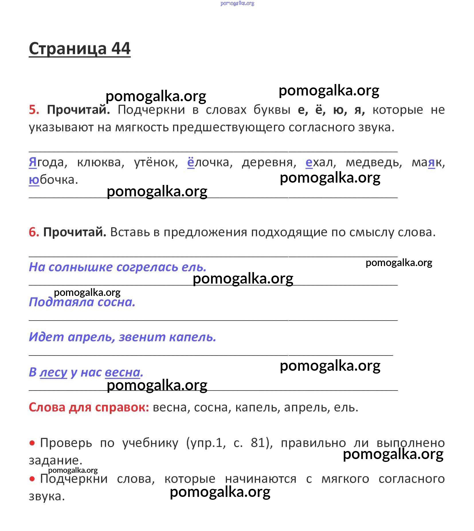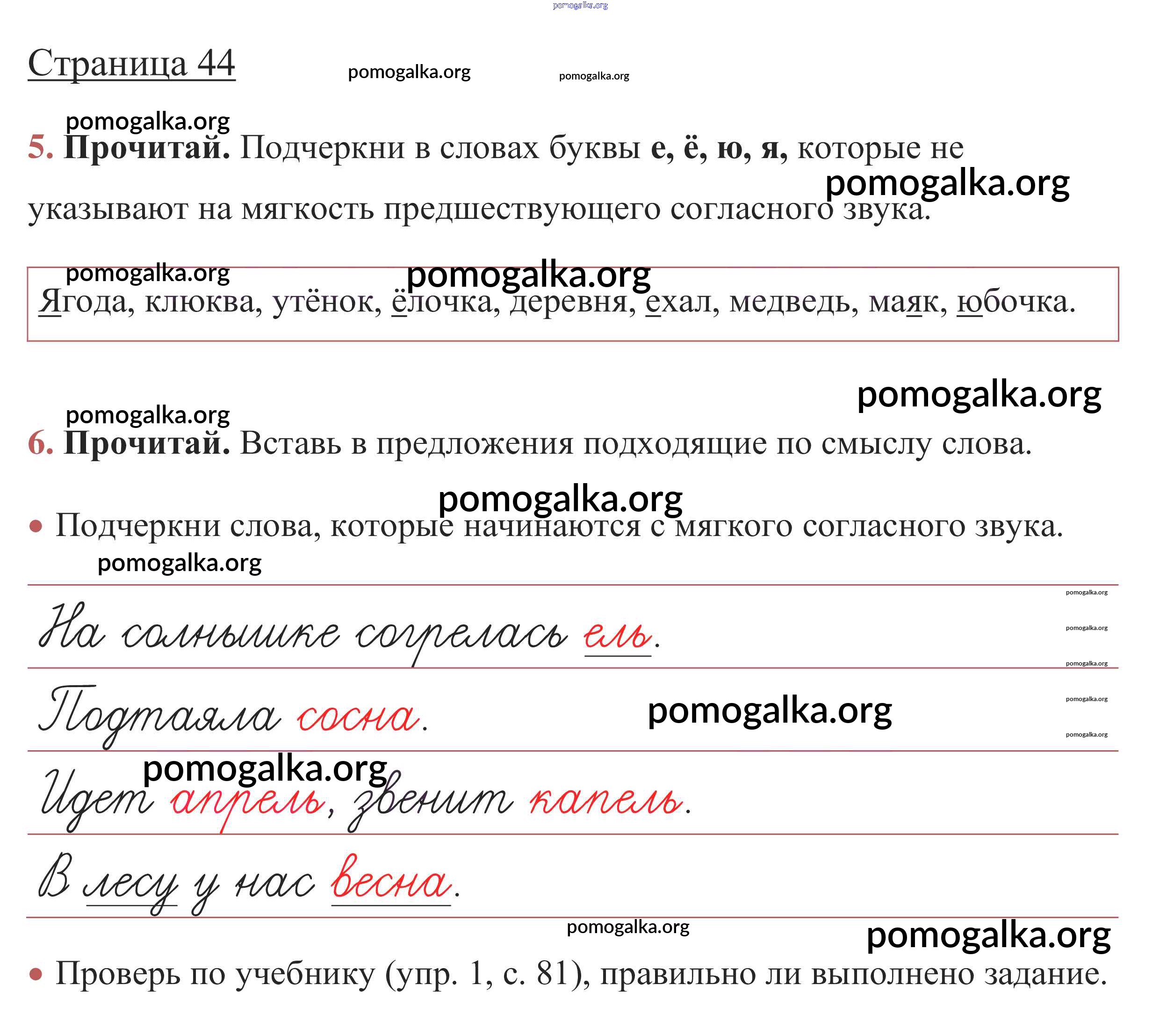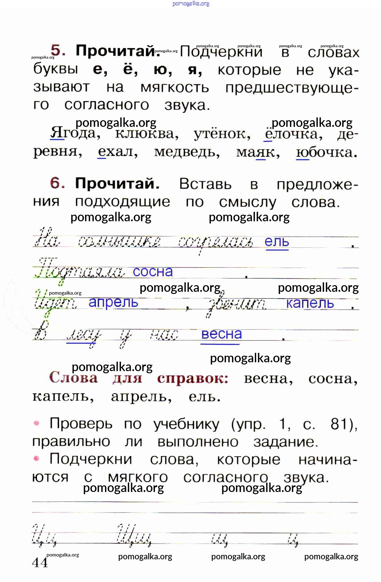 Готовые ответы - Русский язык 1 класс рабочая тетрадь Канакина В.П. - глава 5. звуки и буквы стр. 44