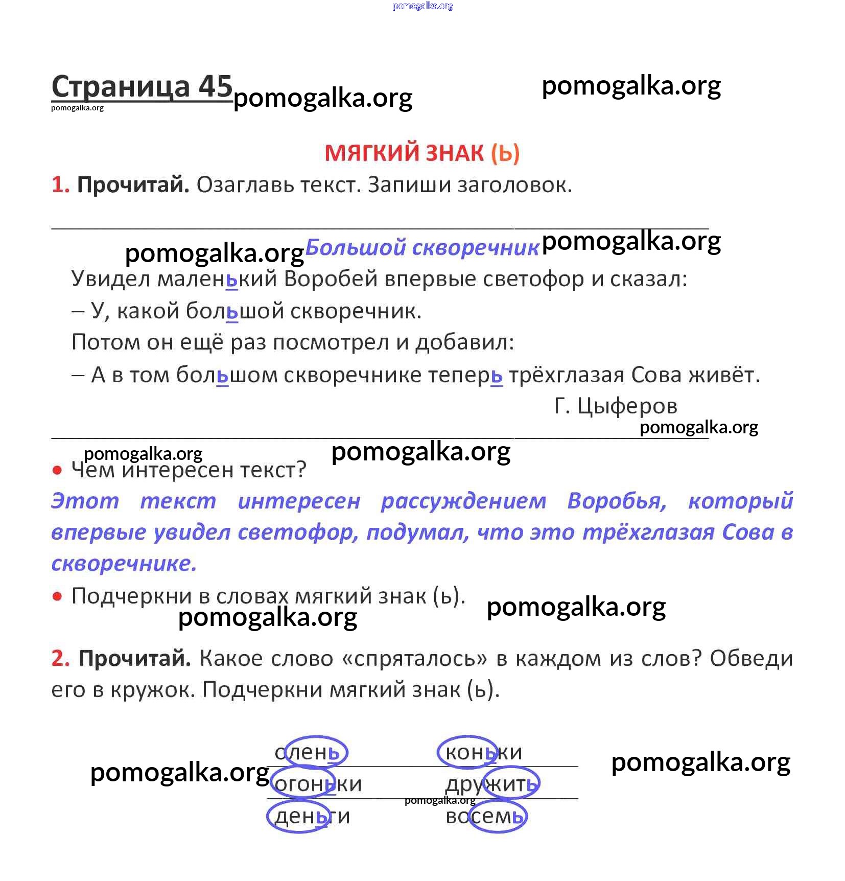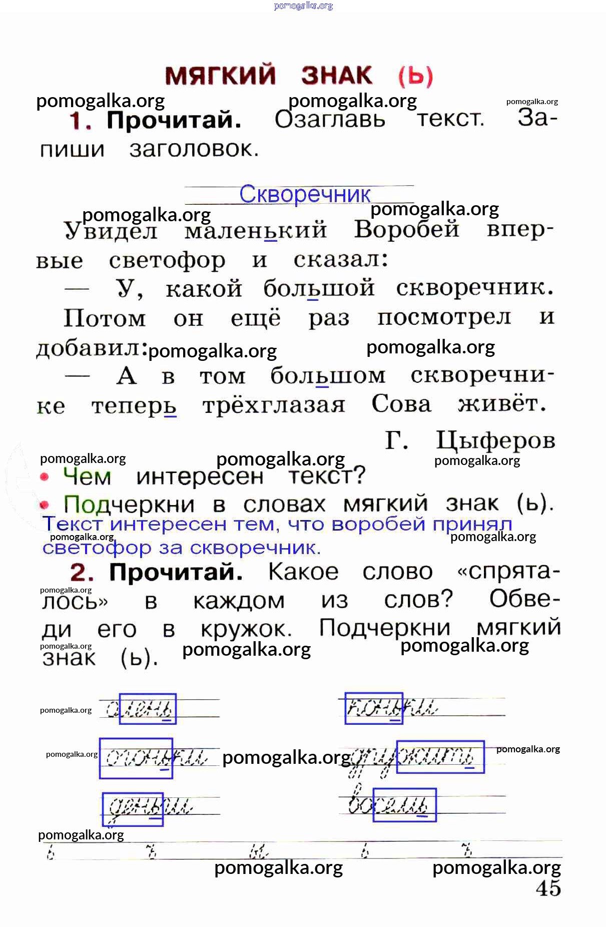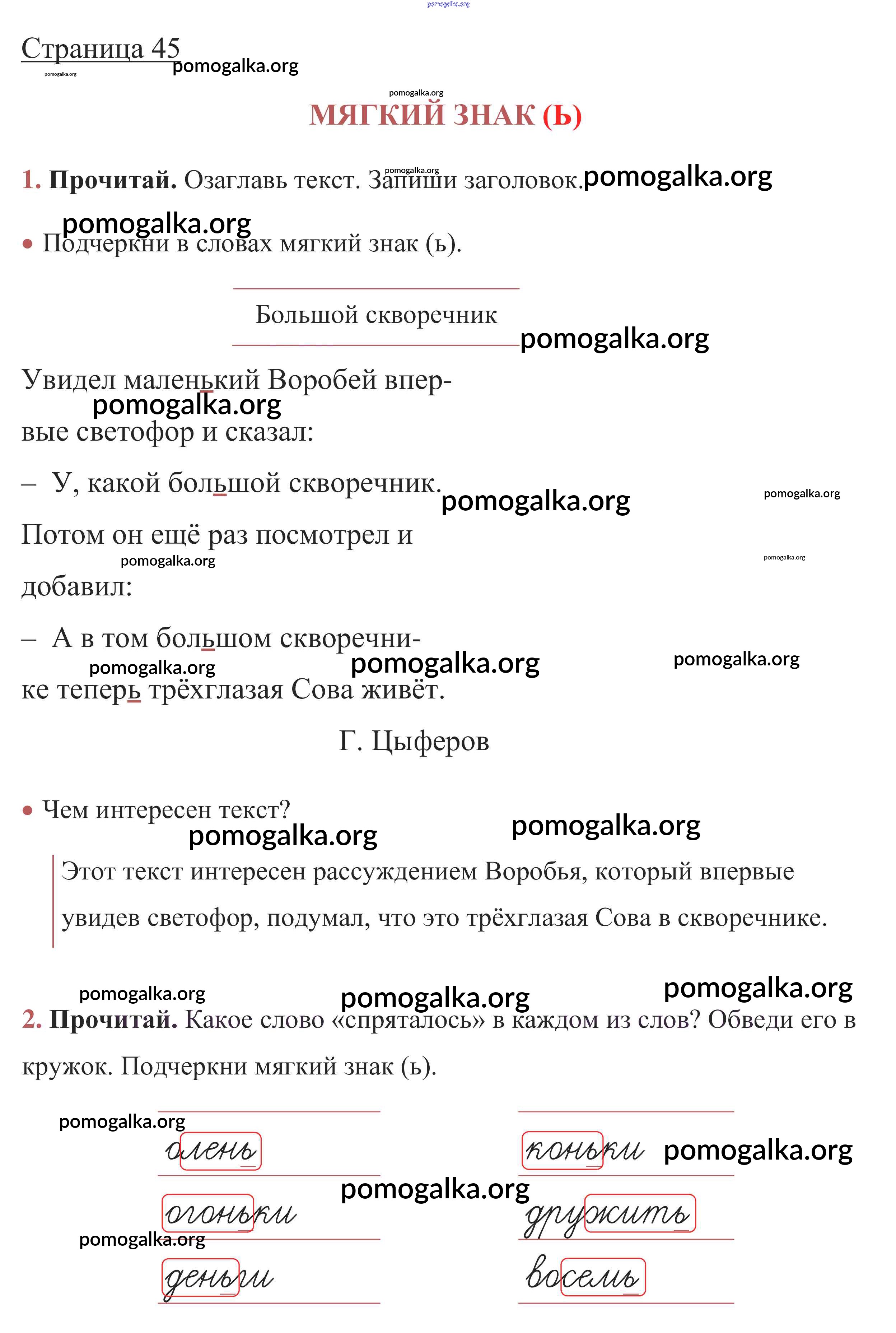 Готовые ответы - Русский язык 1 класс рабочая тетрадь Канакина В.П. - глава 5. звуки и буквы стр. 45