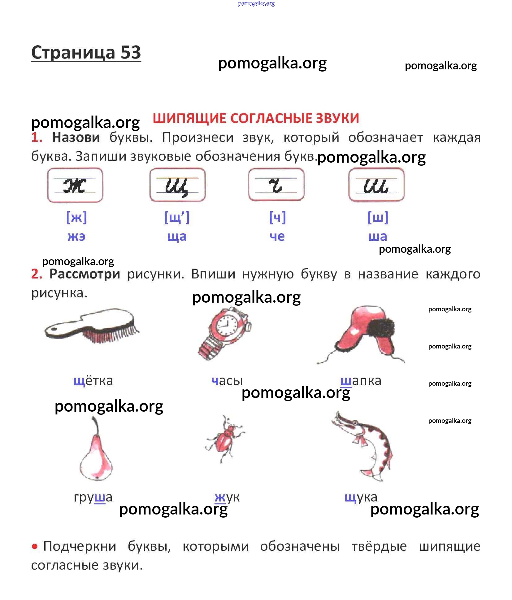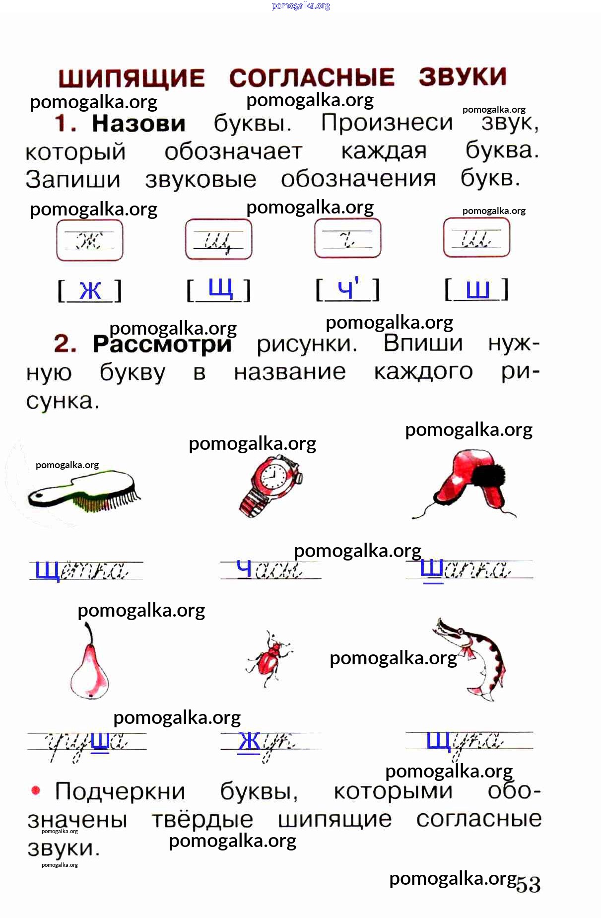 Готовые ответы - Русский язык 1 класс рабочая тетрадь Канакина В.П. - глава 5. звуки и буквы стр. 53