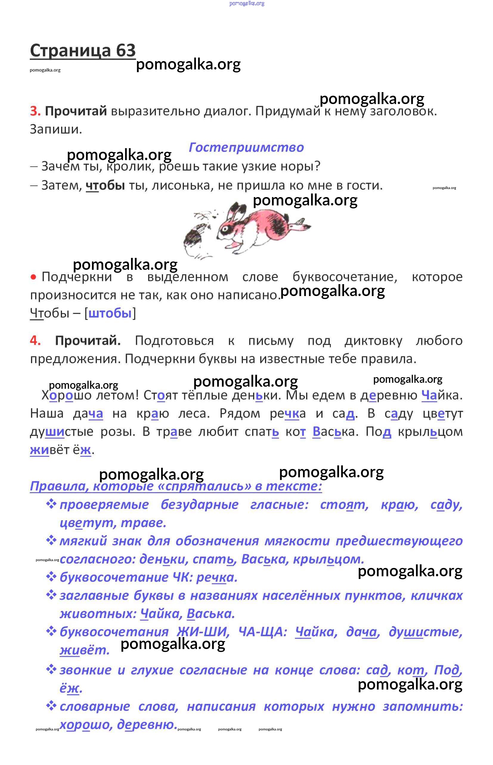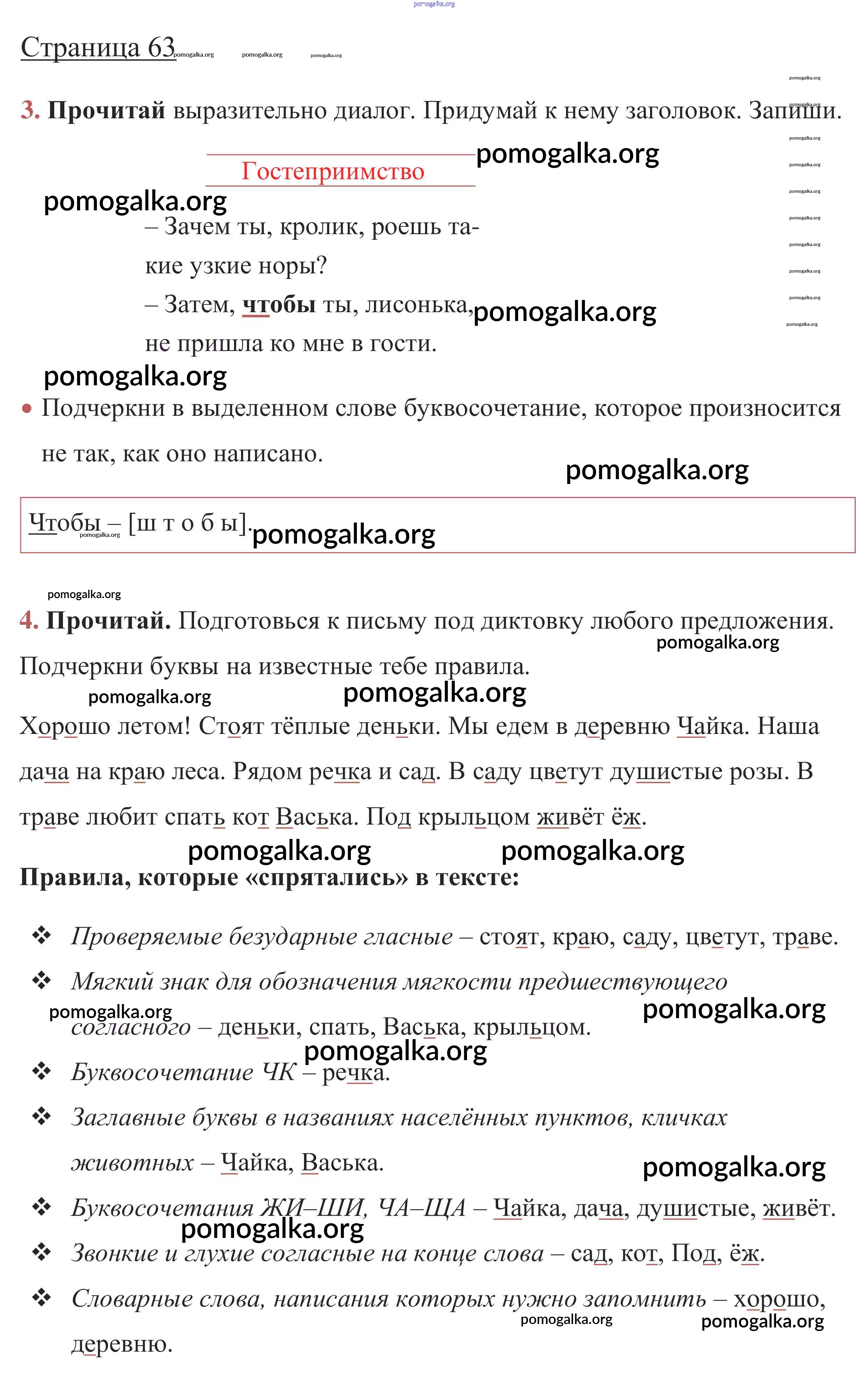 Готовые ответы - Русский язык 1 класс рабочая тетрадь Канакина В.П. - повторение стр. 63