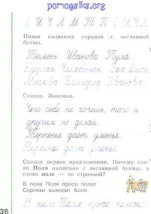 Готовые ответы - Русский язык 1 класс рабочая тетрадь Пиши красиво Климанова Л.Ф. - страница 36