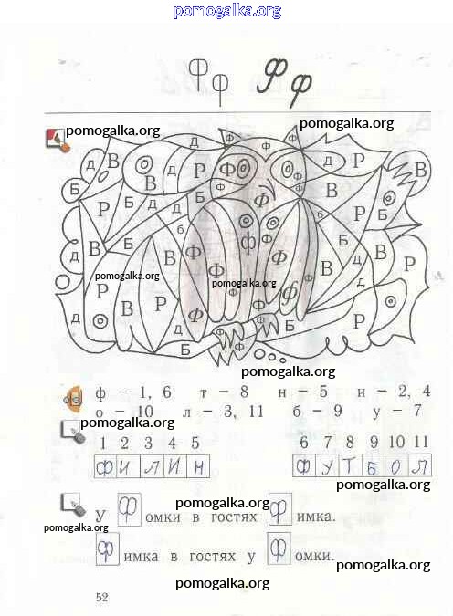 Готовые ответы - Я учусь писать и читать 1 класс рабочая тетрадь Кузнецова М.И. - страница 52