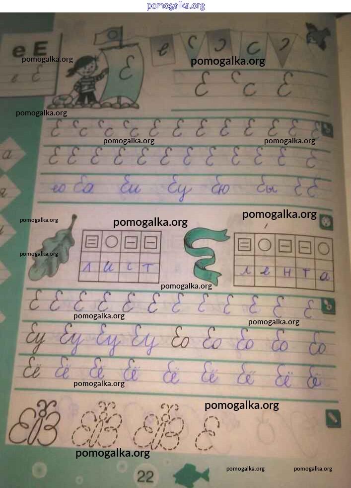 Готовые ответы - Русский язык 1 класс тетрадь по письму Агаркова Н.Г. - тетрадь №2. страница 22