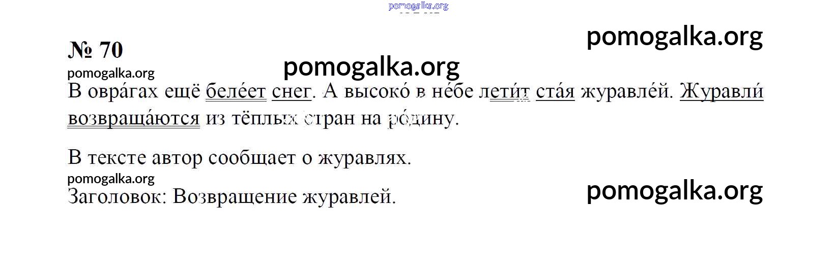 Готовые ответы - Русский язык 1 класс рабочая тетрадь Рамзаева Т.Г. - упражнение 70