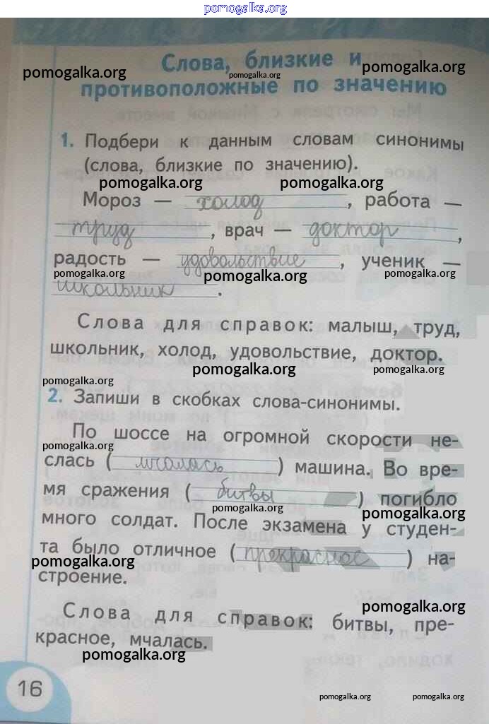 Готовые ответы - Русский язык 1 класс рабочая тетрадь Тихомирова Е.М.(к уч. Климановой) - страница 16