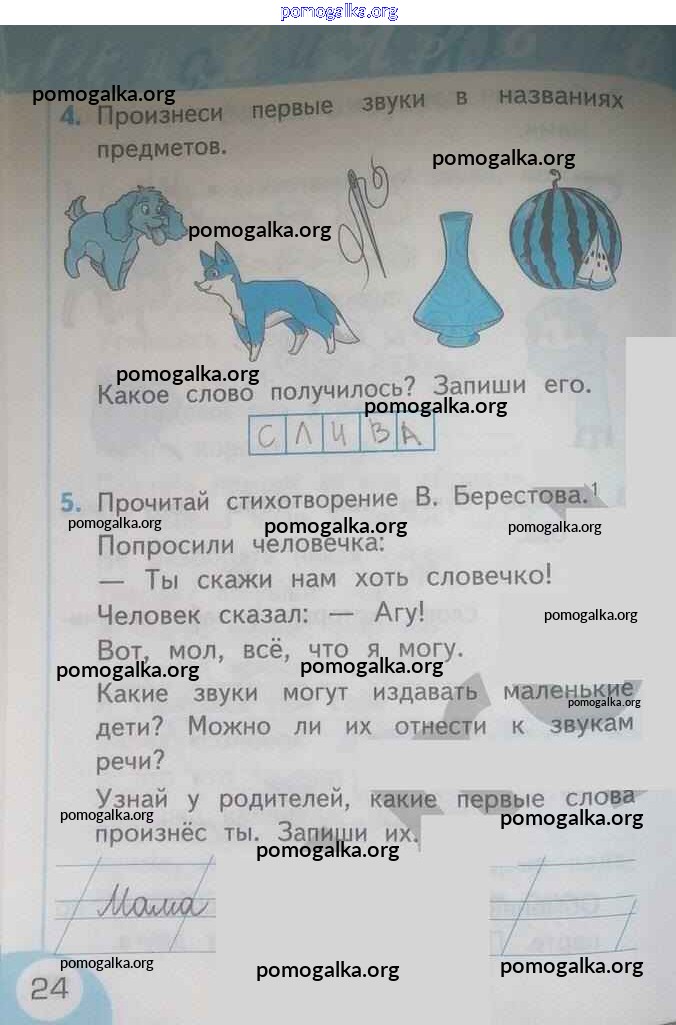 Готовые ответы - Русский язык 1 класс рабочая тетрадь Тихомирова Е.М.(к уч. Климановой) - страница 24