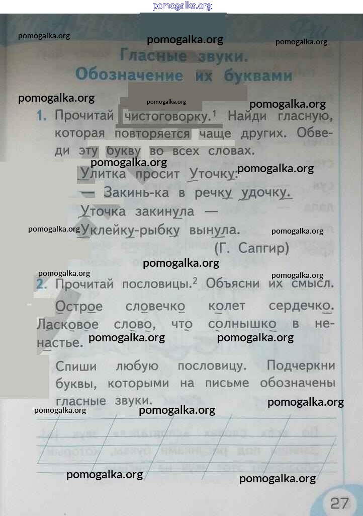 Готовые ответы - Русский язык 1 класс рабочая тетрадь Тихомирова Е.М.(к уч. Климановой) - страница 27