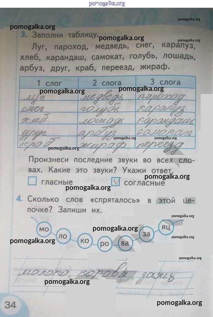 Готовые ответы - Русский язык 1 класс рабочая тетрадь Тихомирова Е.М.(к уч. Климановой) - страница 34