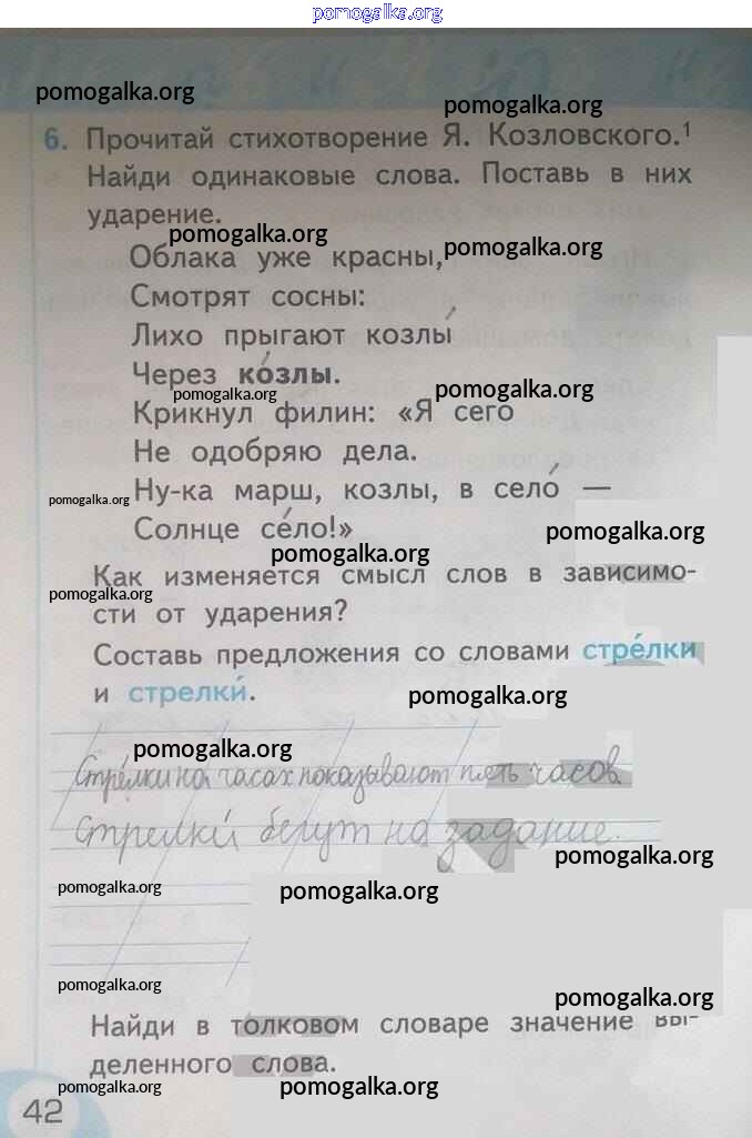Готовые ответы - Русский язык 1 класс рабочая тетрадь Тихомирова Е.М.(к уч. Климановой) - страница 42