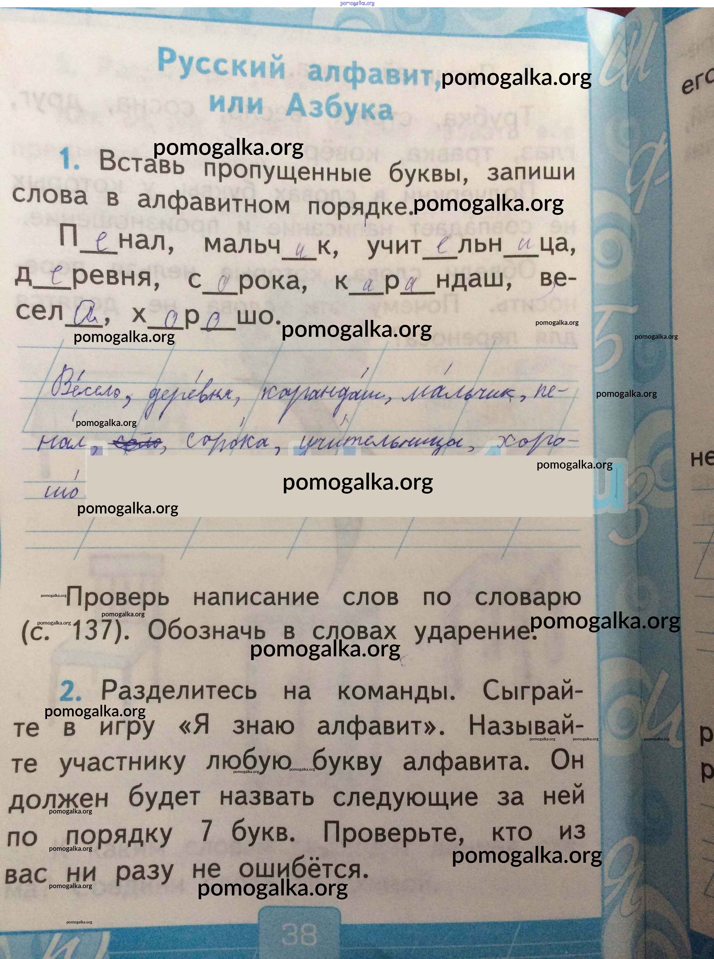 Готовые ответы - Русский язык рабочая тетрадь Тихомирова Е.М. (к уч. Канакиной) - страница 38