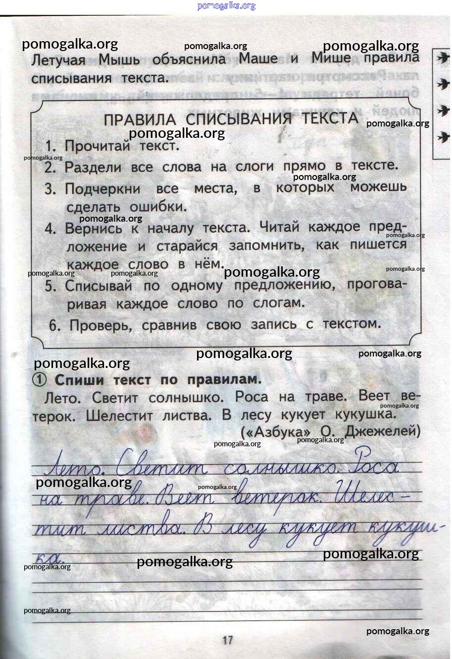 Готовые ответы - Русский язык 1 класс тетрадь для самостоятельной работы Гольфман Е.Р. - страница 17