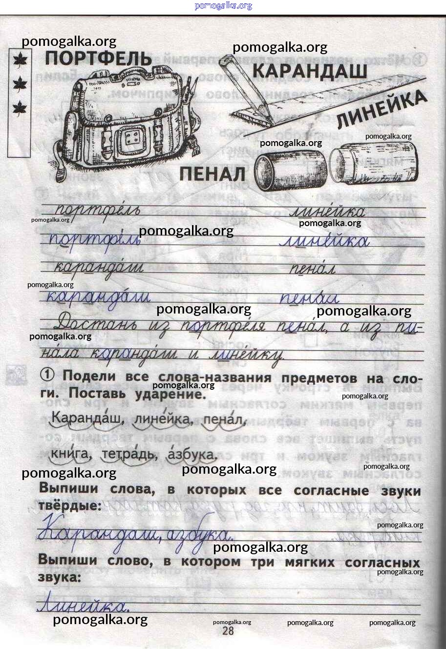 Готовые ответы - Русский язык 1 класс тетрадь для самостоятельной работы Гольфман Е.Р. - страница 28