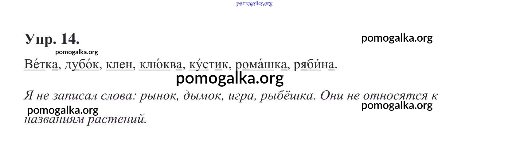 Готовые ответы - Русский язык 1 класс Бунеев Р.Н. - упражнение № 14