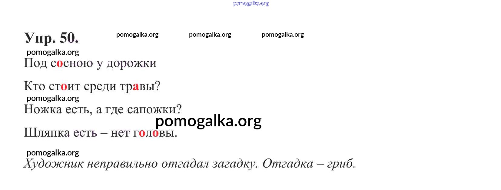Готовые ответы - Русский язык 1 класс Бунеев Р.Н. - упражнение № 50