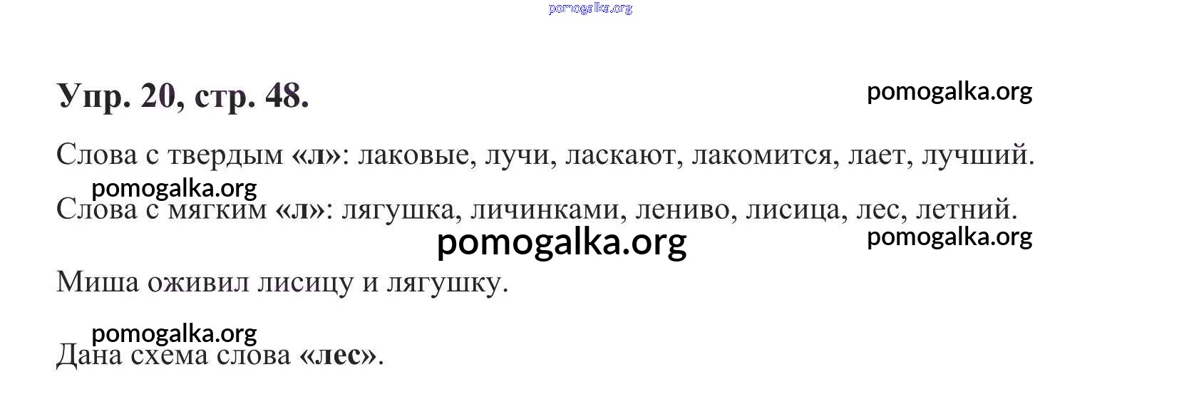 Готовые ответы - Русский язык 1 класс Чуракова Н.А. - упражнение № 20