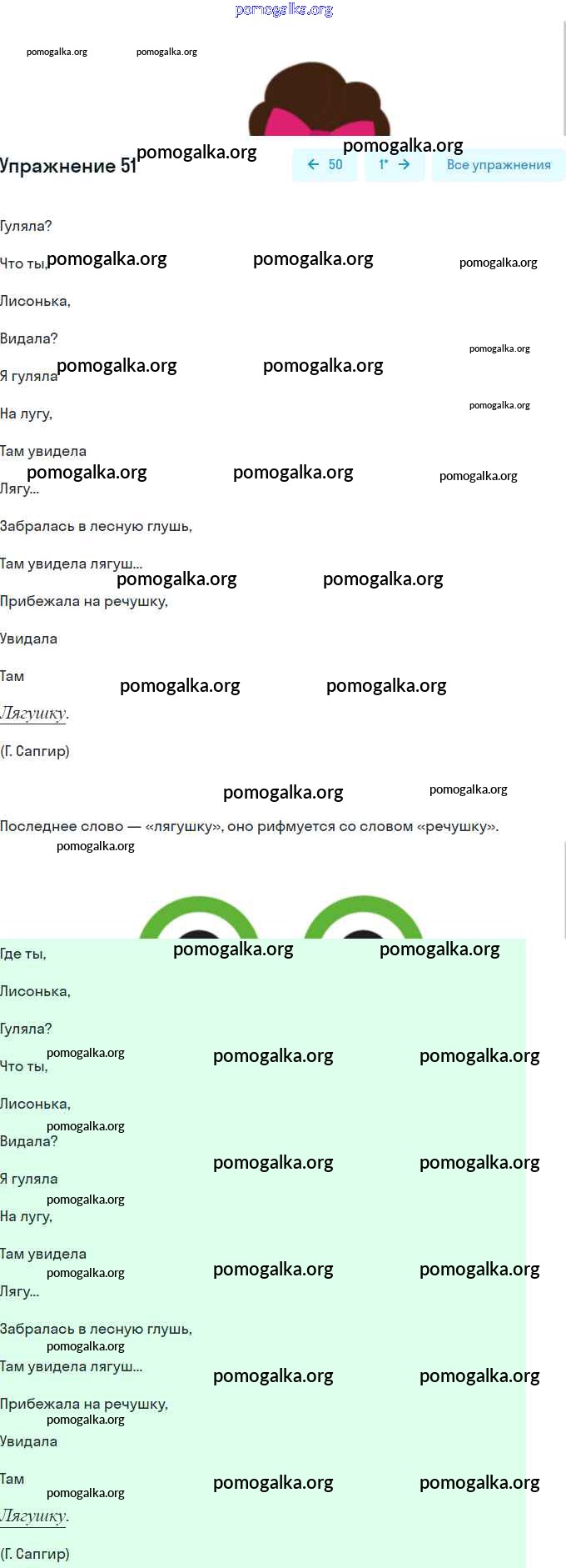 Готовые ответы - Русский язык 1 класс Чуракова Н.А. - упражнение № 51