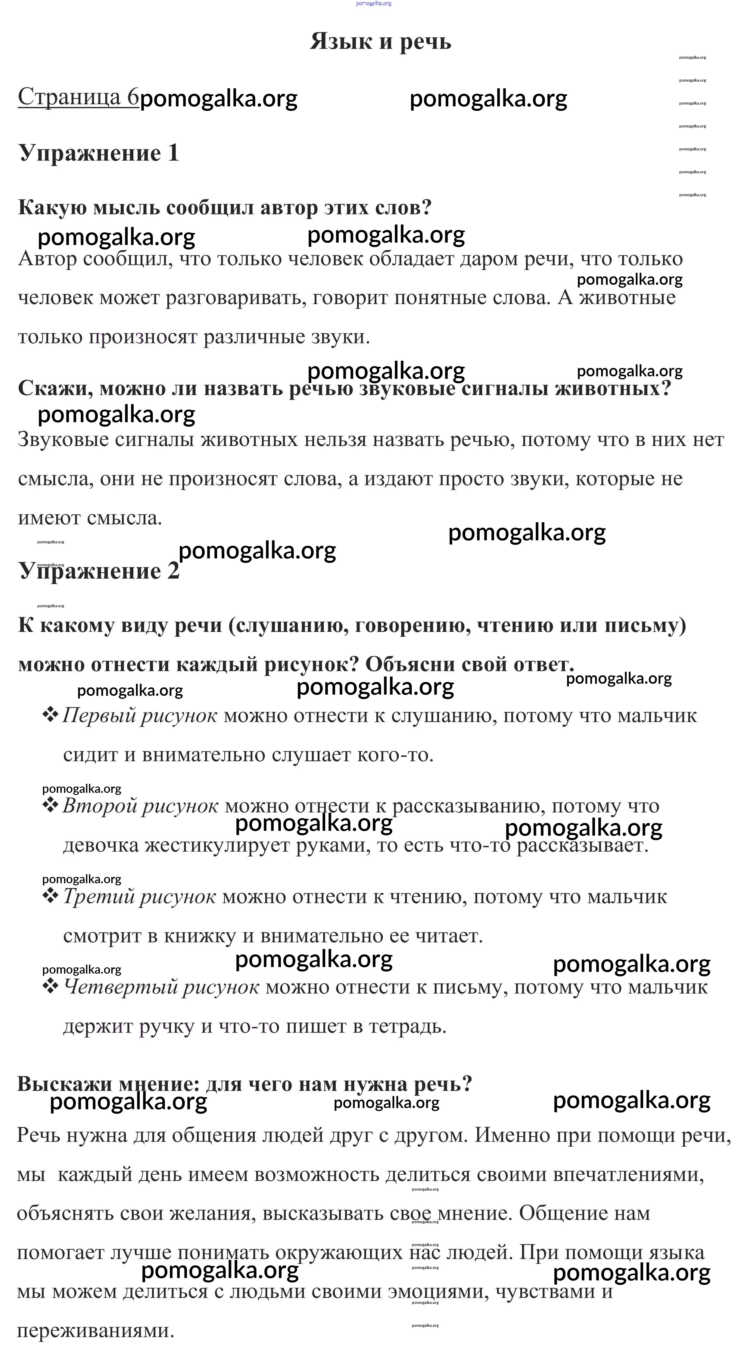 Готовые ответы - Русский язык 1 класс Канакина В.П. - глава 1. Наша речь 6
