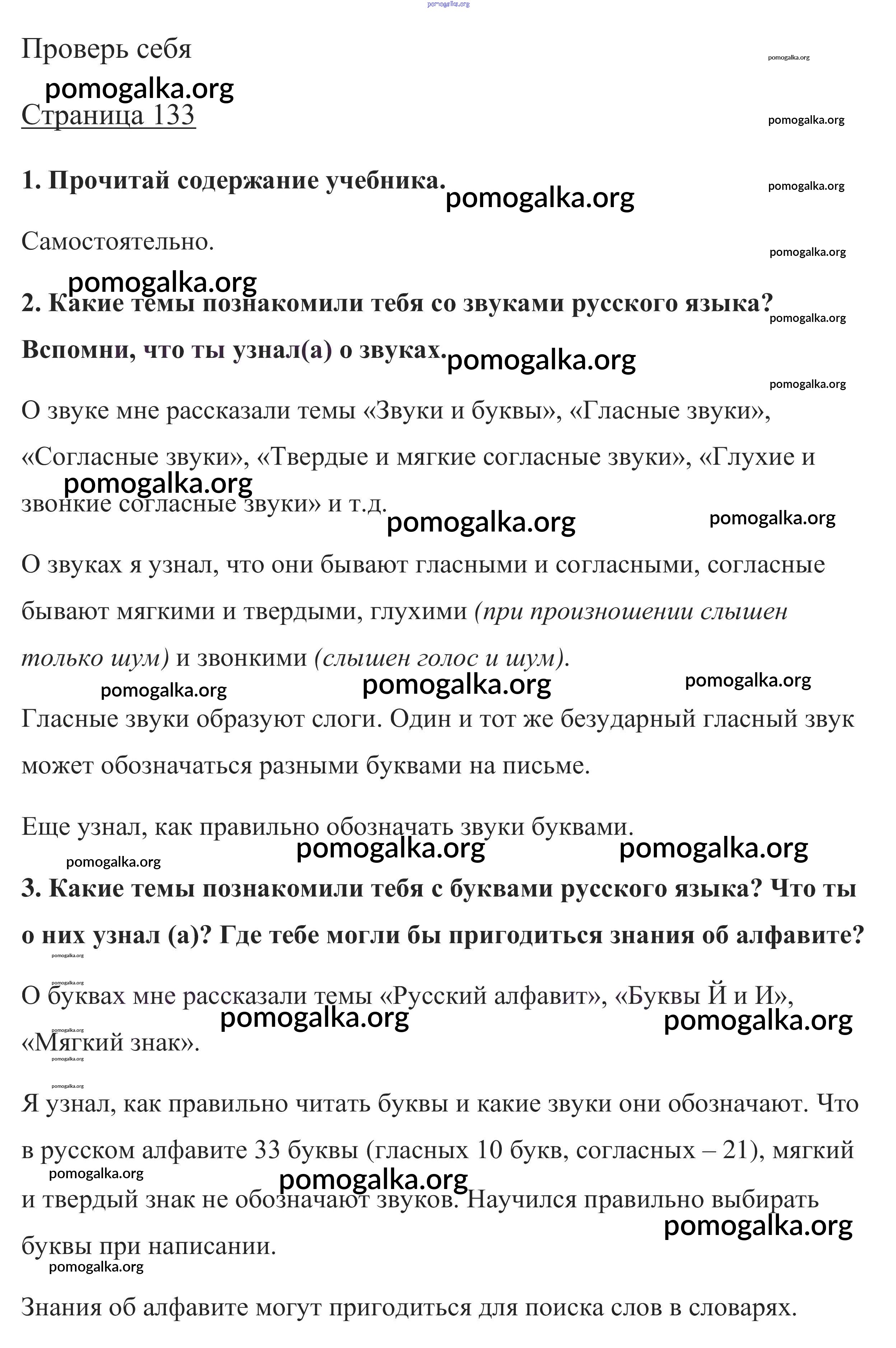 Готовые ответы - Русский язык 1 класс Канакина В.П. - повторение 133