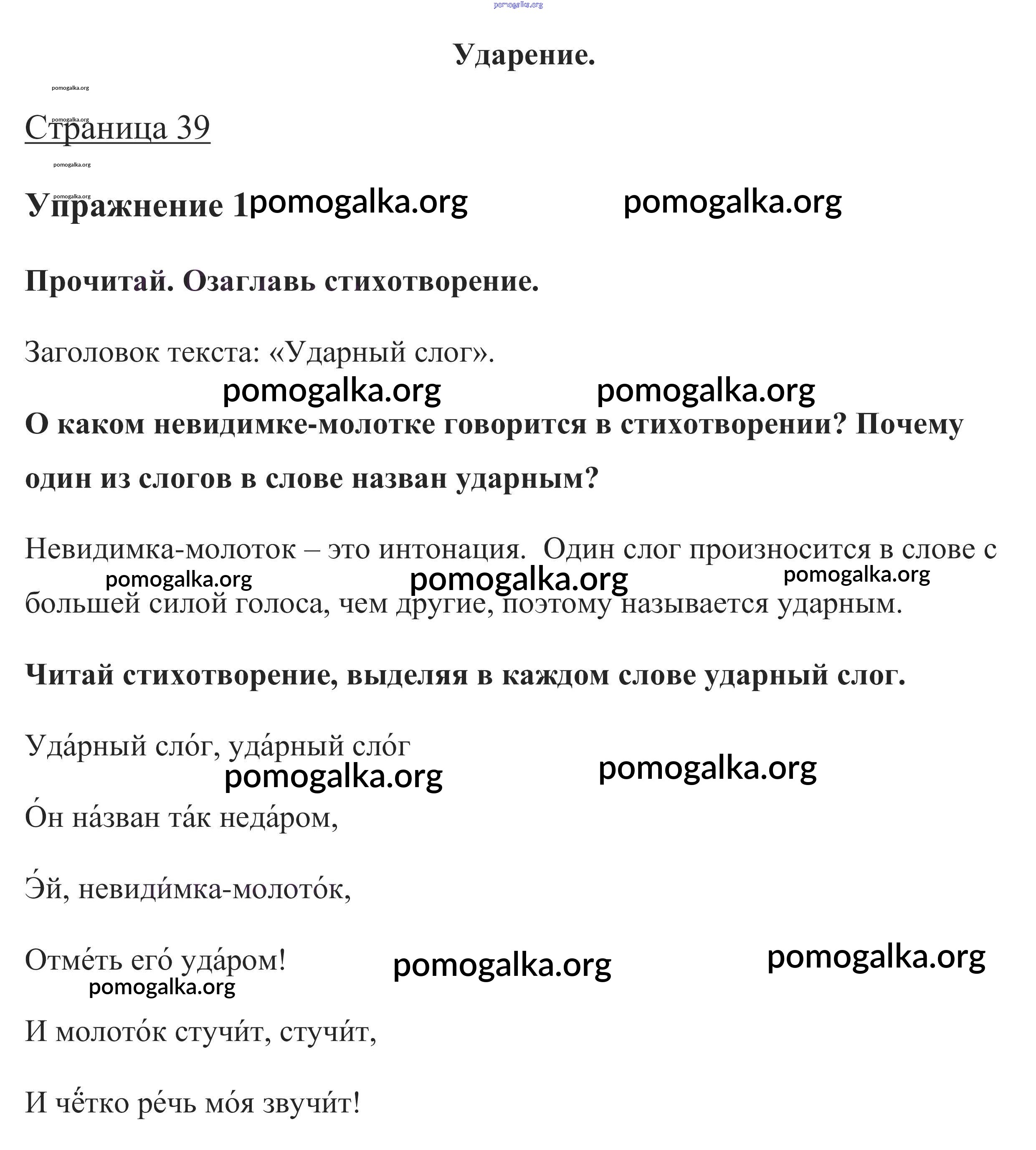 Готовые ответы - Русский язык 1 класс Канакина В.П. - глава 4. Слово и слог. Ударение 39