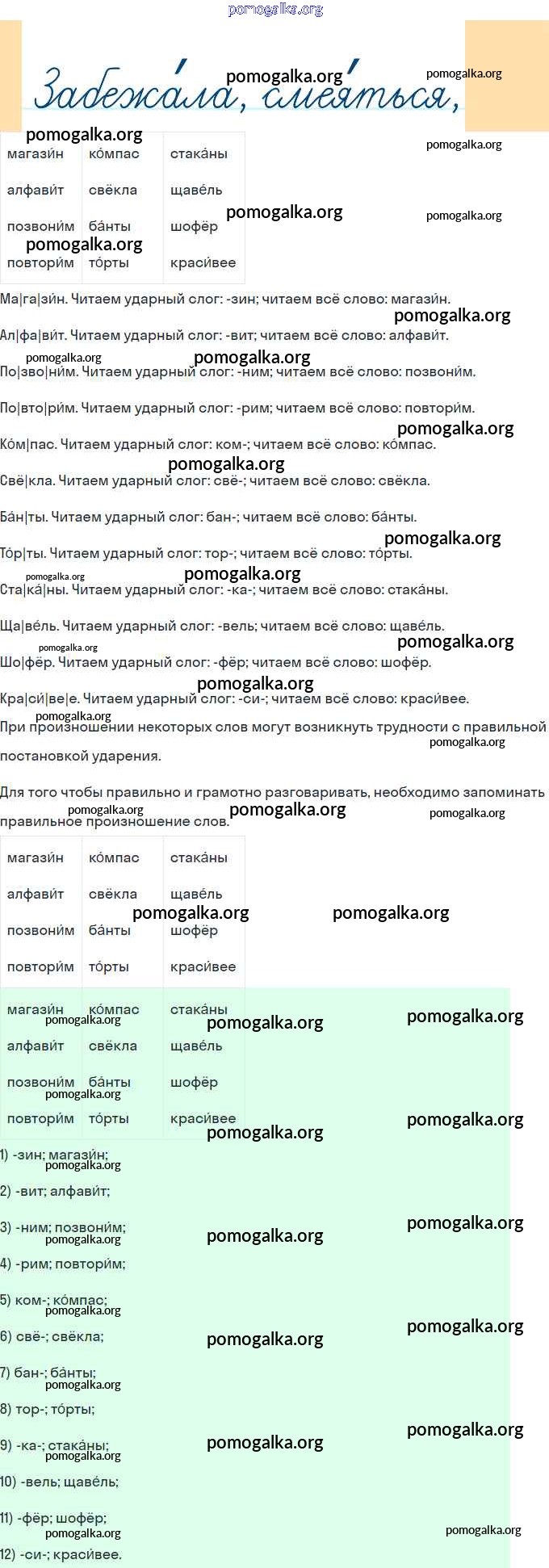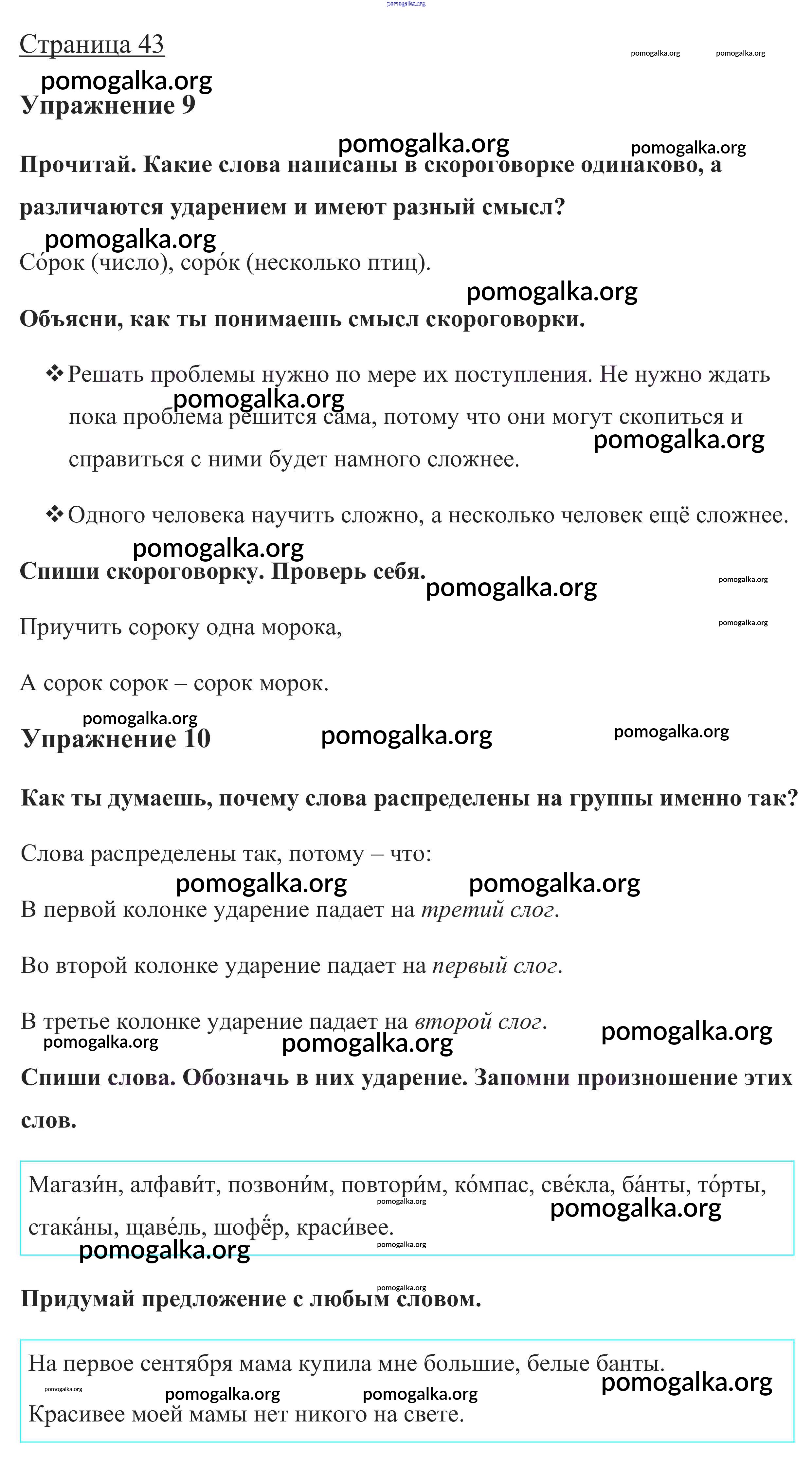 Готовые ответы - Русский язык 1 класс Канакина В.П. - глава 4. Слово и слог. Ударение 43