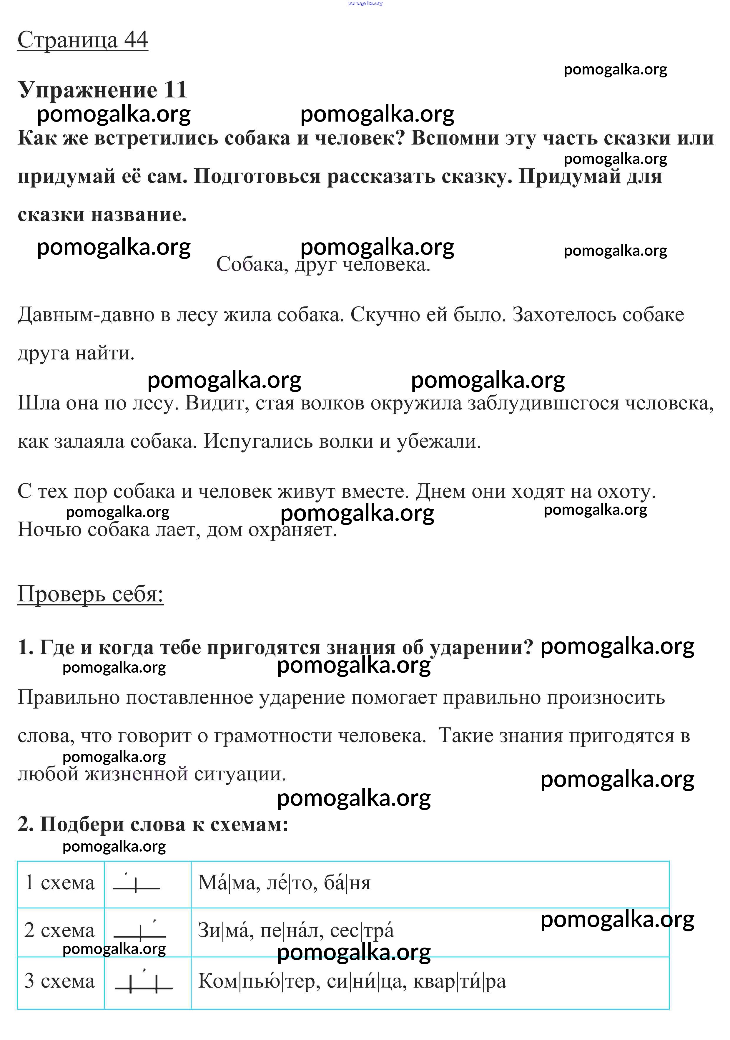 Готовые ответы - Русский язык 1 класс Канакина В.П. - глава 4. Слово и слог. Ударение 44