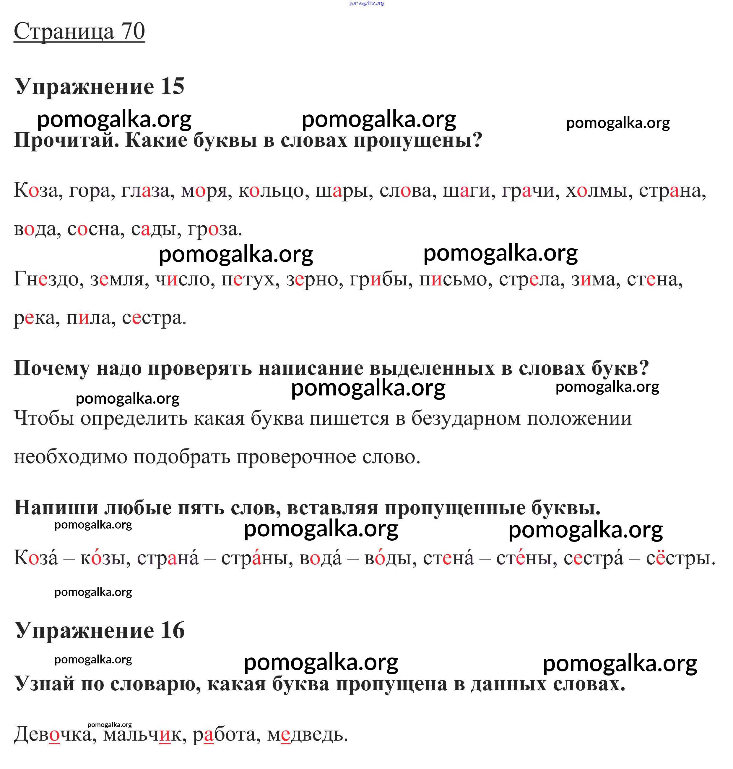 Готовые ответы - Русский язык 1 класс Канакина В.П. - глава 5. Звуки и буквы 70