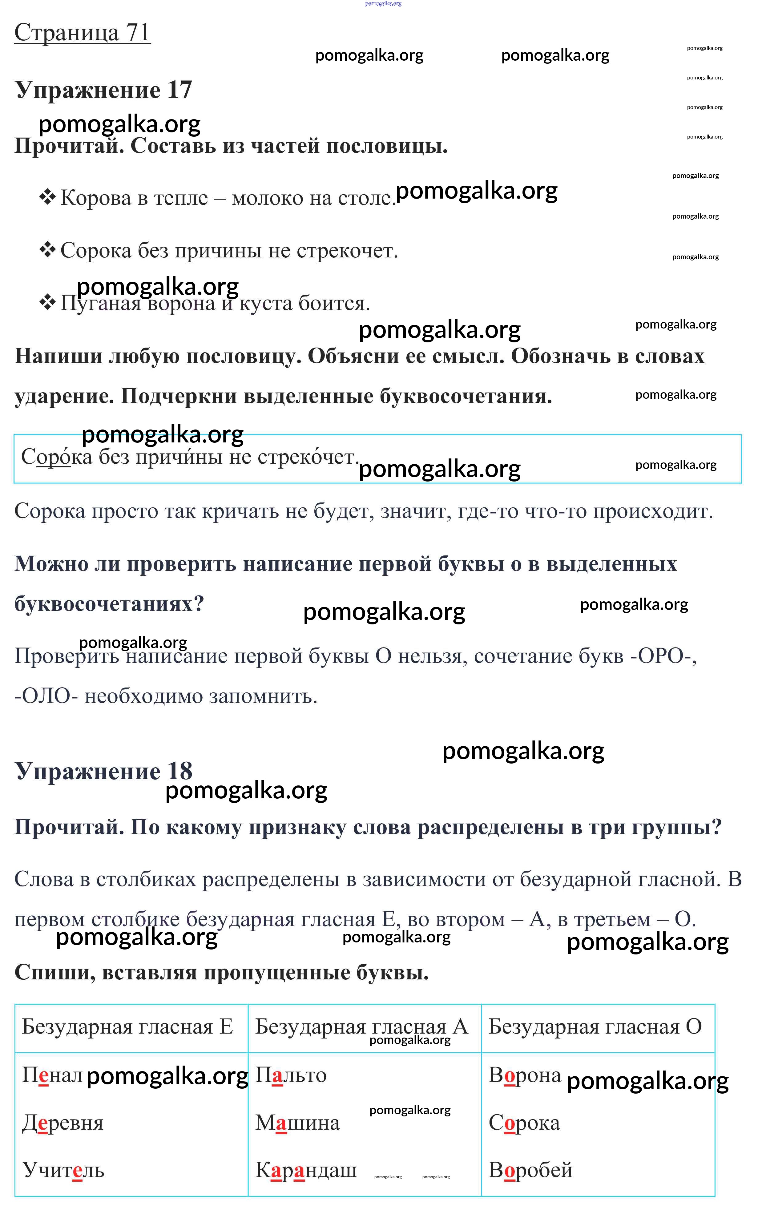 Готовые ответы - Русский язык 1 класс Канакина В.П. - глава 5. Звуки и буквы 71