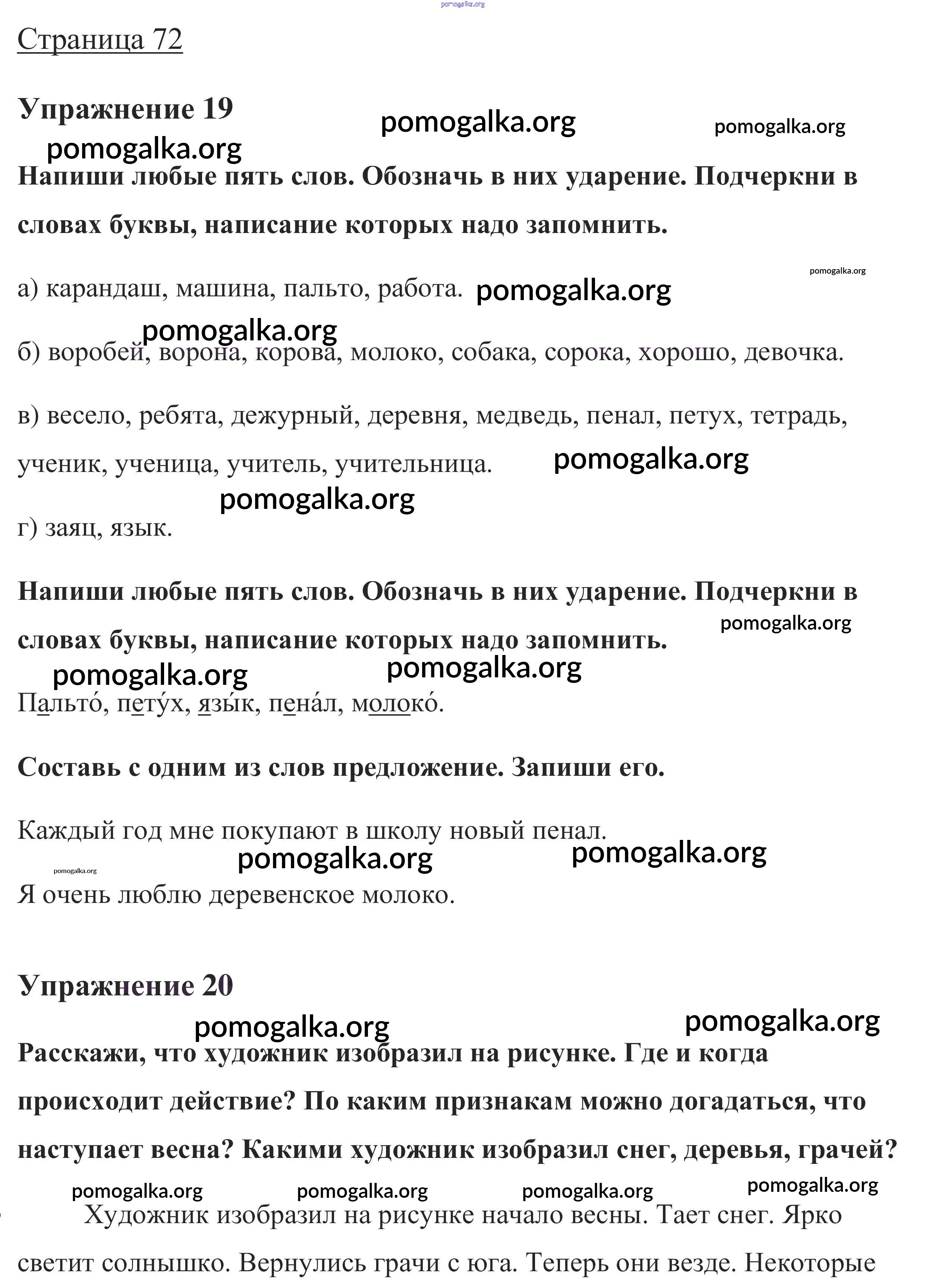 Готовые ответы - Русский язык 1 класс Канакина В.П. - глава 5. Звуки и буквы 72