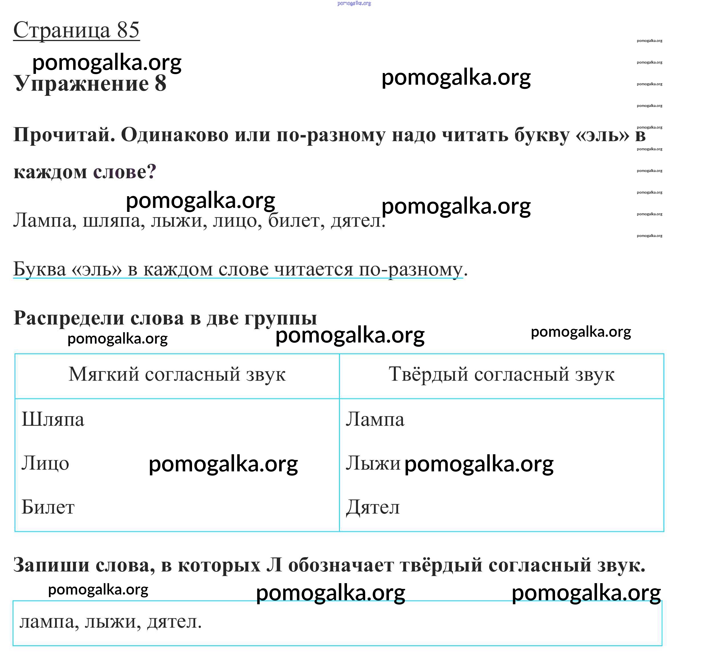 Готовые ответы - Русский язык 1 класс Канакина В.П. - глава 5. Звуки и буквы 85