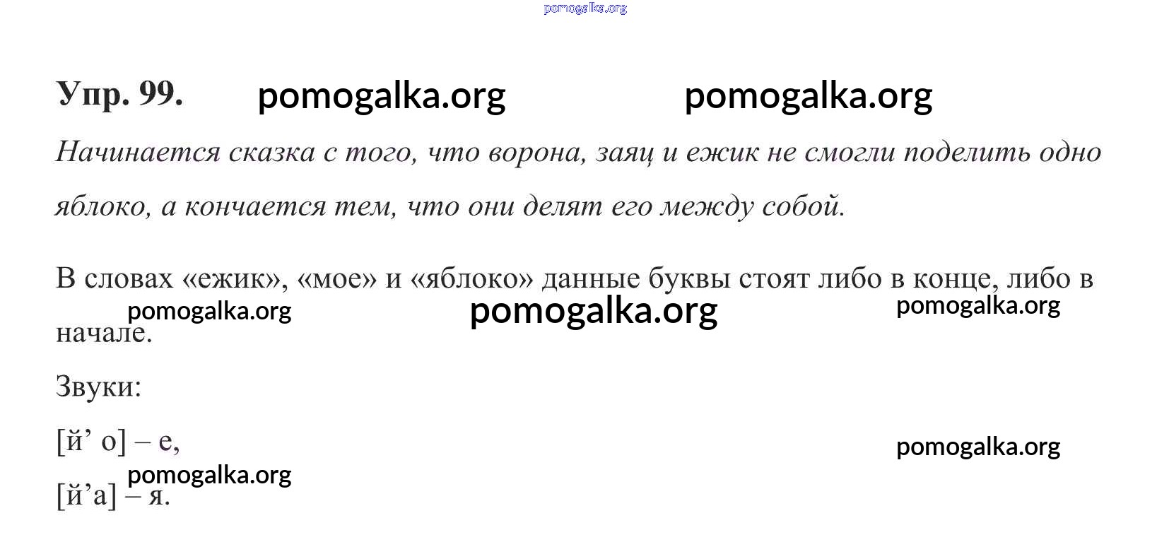 Готовые ответы - Русский язык 1 класс Климанова Л.Ф. - тема 10. гласные звуки. обозначение их буквами Упр. 99