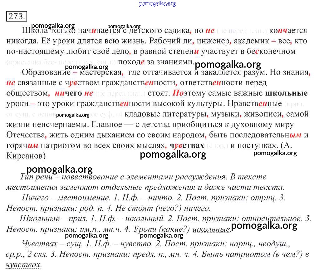 Готовые ответы - Русский язык 10-11 классы Греков В.Ф. - упражнение 273