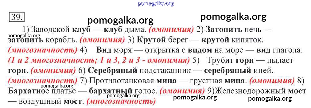 Готовые ответы - Русский язык 10-11 классы Греков В.Ф. - упражнение 39