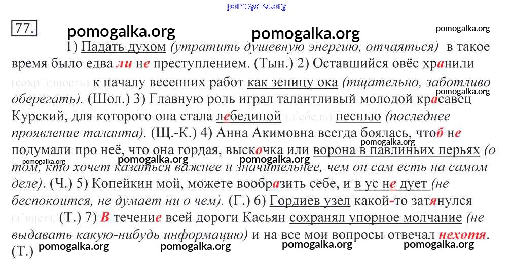 Готовые ответы - Русский язык 10-11 классы Греков В.Ф. - упражнение 77
