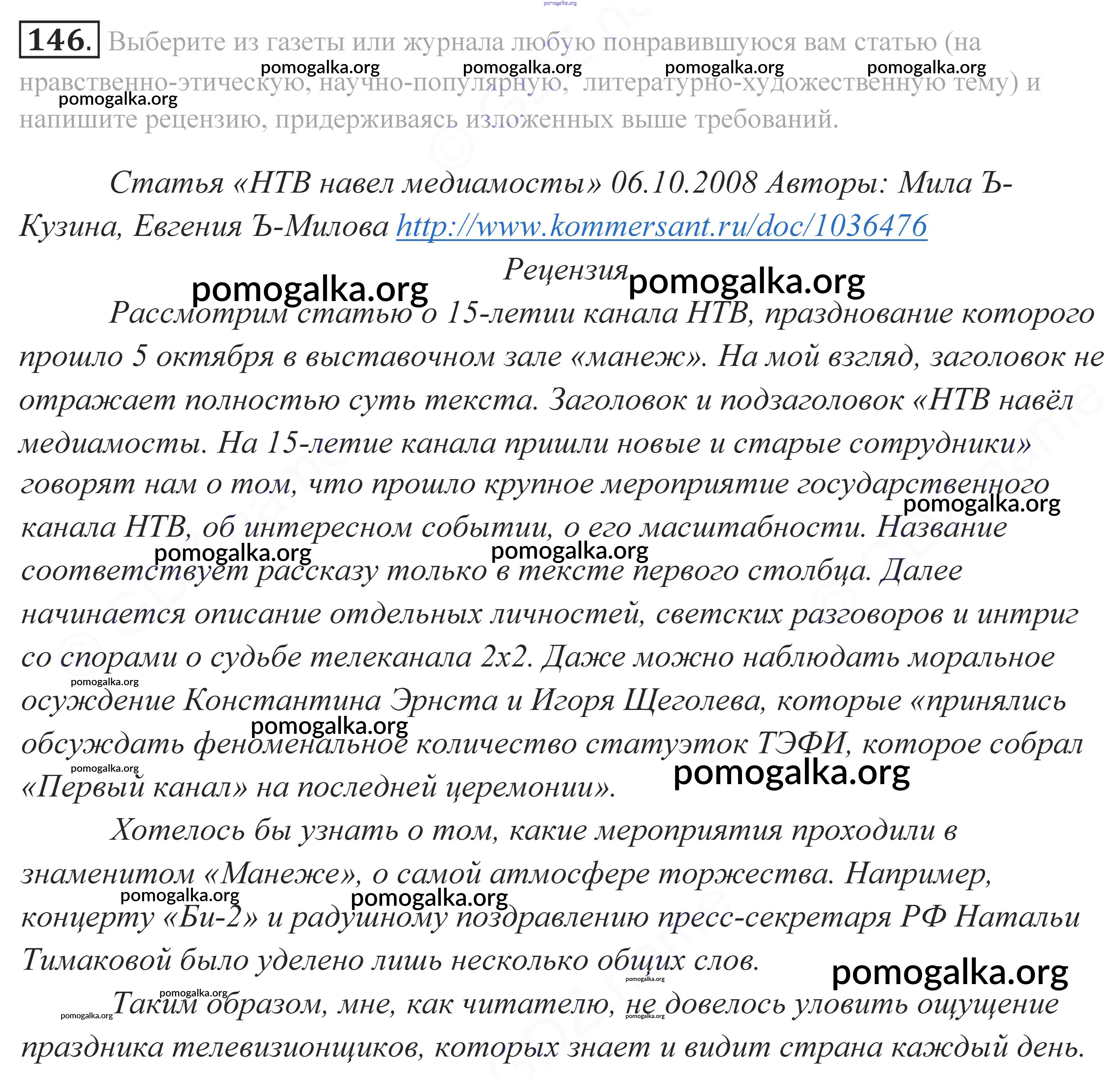 Готовые ответы - Русский язык 10-11 класс Власенков А.И. - упражнение 146