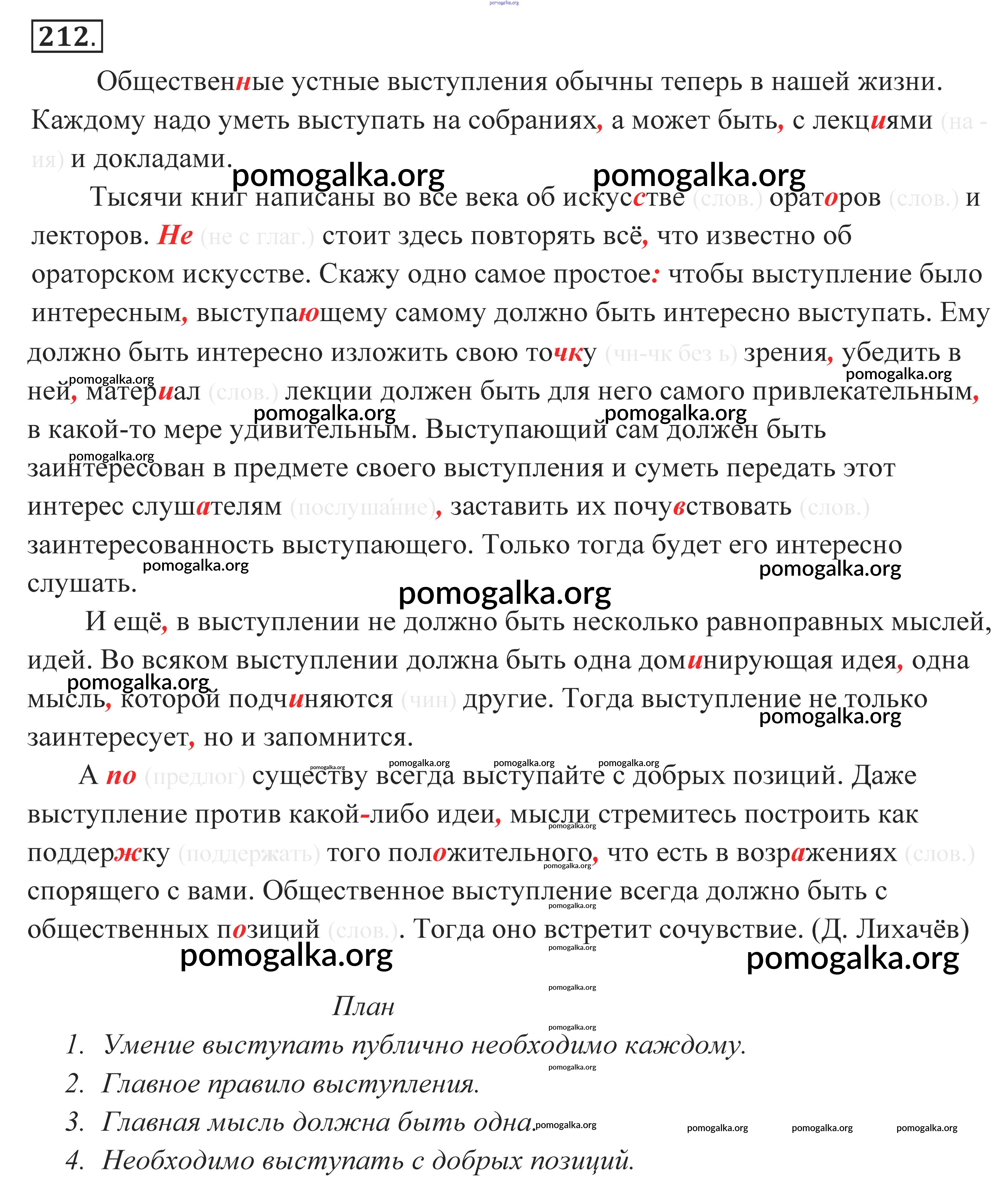 Готовые ответы - Русский язык 10-11 класс Власенков А.И. - упражнение 212