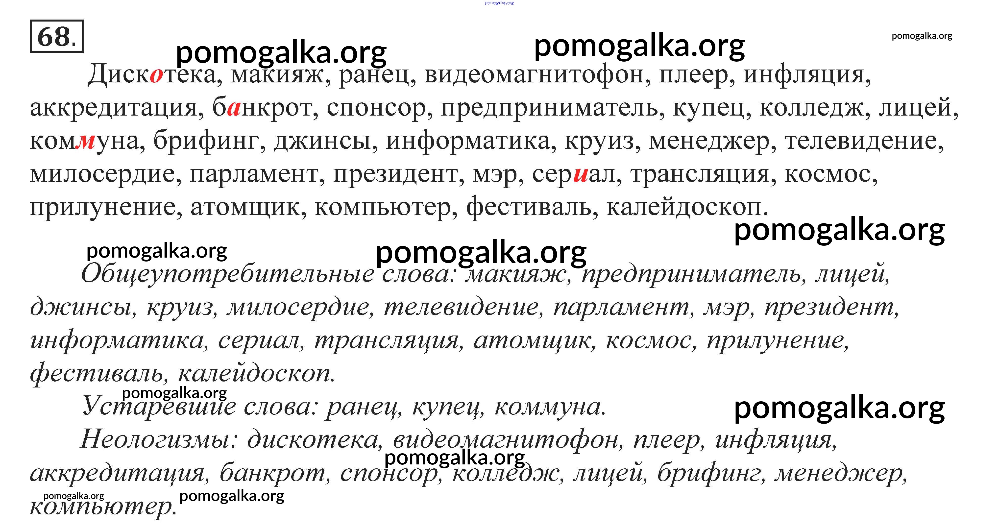 Готовые ответы - Русский язык 10-11 класс Власенков А.И. - упражнение 68