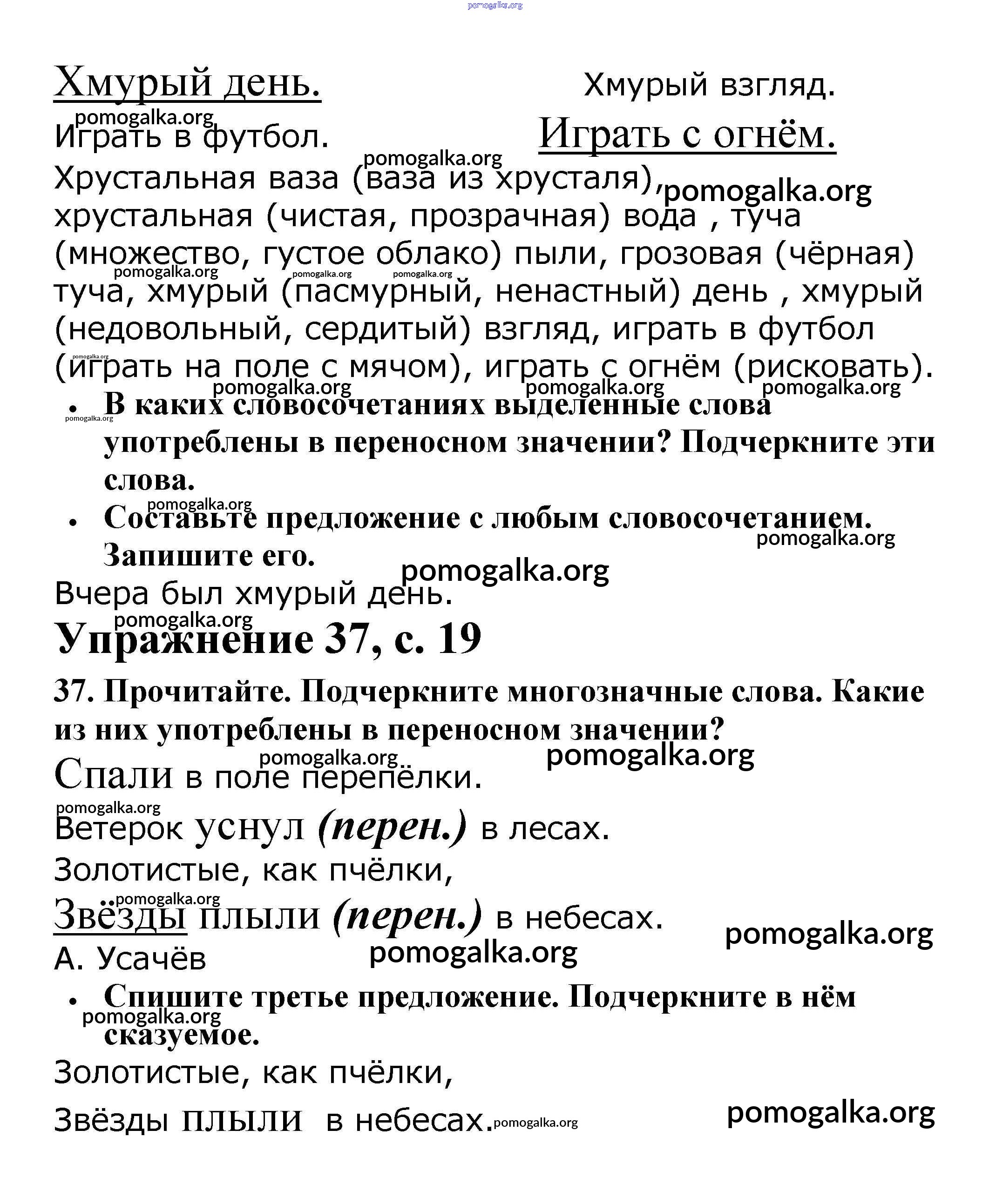 Готовые ответы - Русский язык 2 класс рабочая тетрадь Канакина В.П. - часть 1. страница 19