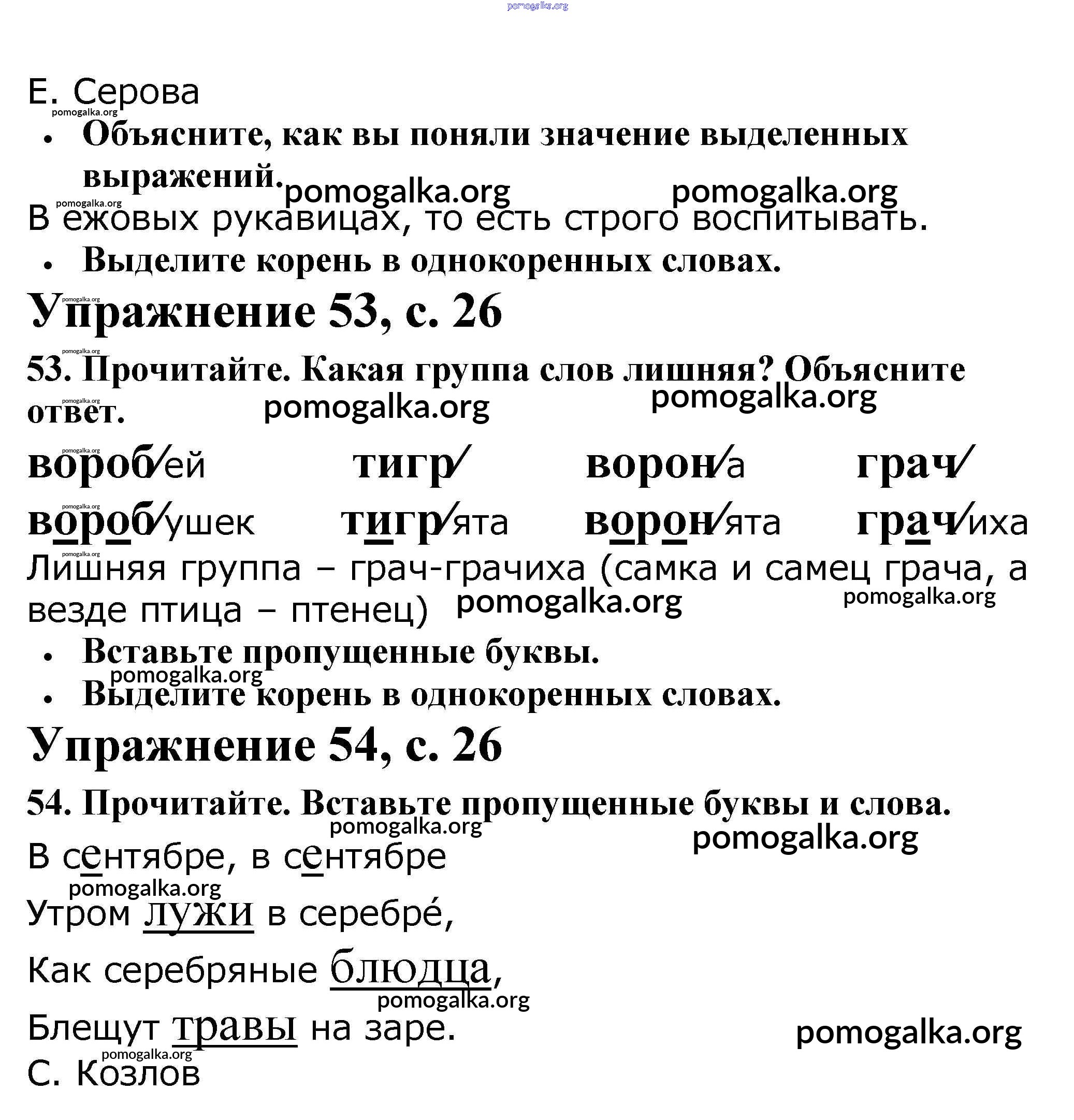 Готовые ответы - Русский язык 2 класс рабочая тетрадь Канакина В.П. - часть 1. страница 26