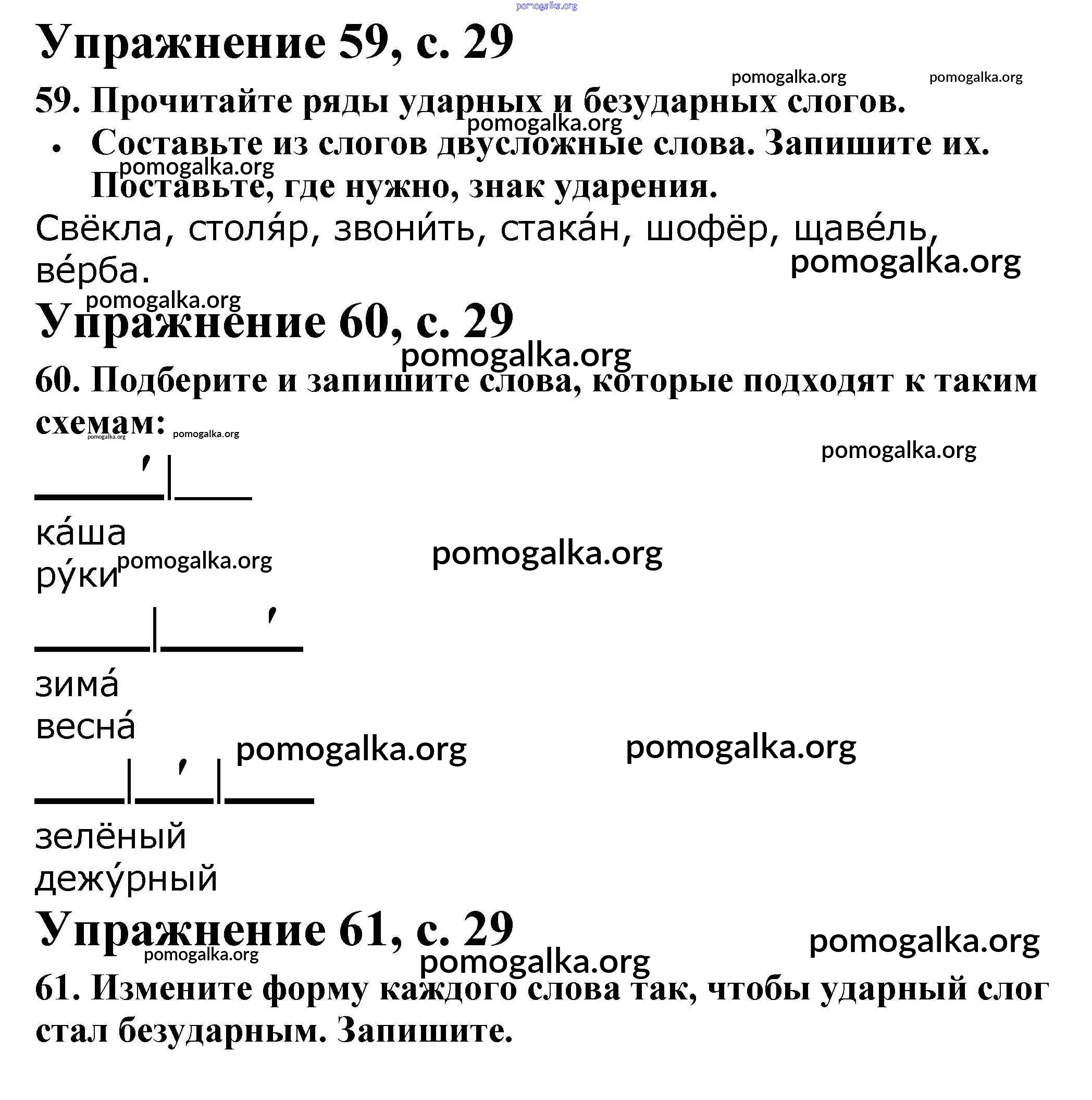 Готовые ответы - Русский язык 2 класс рабочая тетрадь Канакина В.П. - часть 1. страница 29