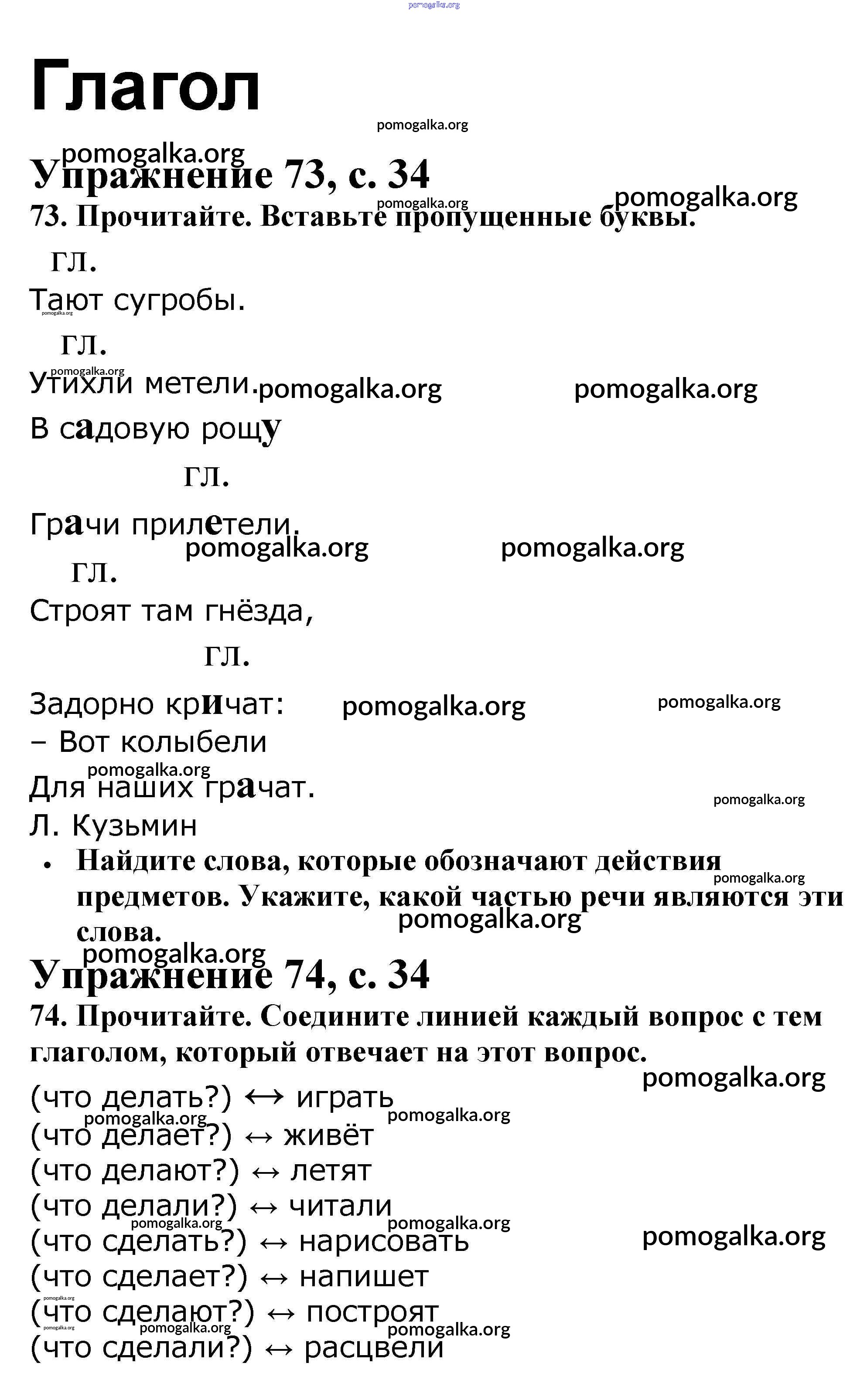 Готовые ответы - Русский язык 2 класс рабочая тетрадь Канакина В.П. - часть 2. страница 34