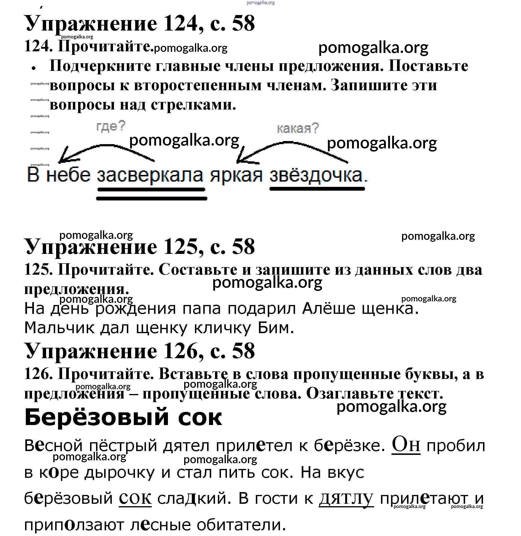 Готовые ответы - Русский язык 2 класс рабочая тетрадь Канакина В.П. - часть 2. страница 58