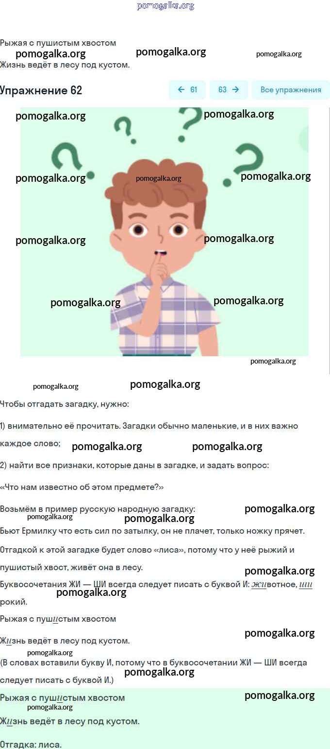 Готовые ответы - Русский язык 2 класс рабочая тетрадь Климанова Л.Ф. - упражнение 62