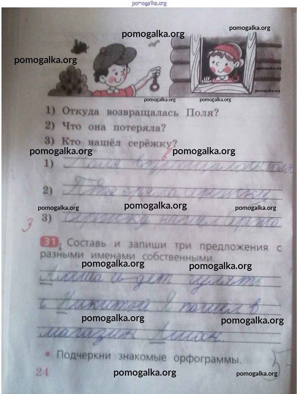 Готовые ответы - Русский язык 2 класс рабочая тетрадь Песняева Н.А. - часть 1. страница 24
