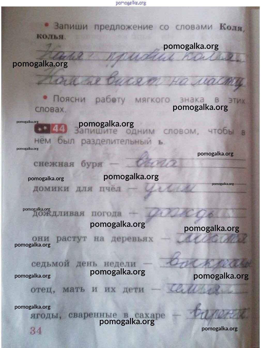 Готовые ответы - Русский язык 2 класс рабочая тетрадь Песняева Н.А. - часть 1. страница 34