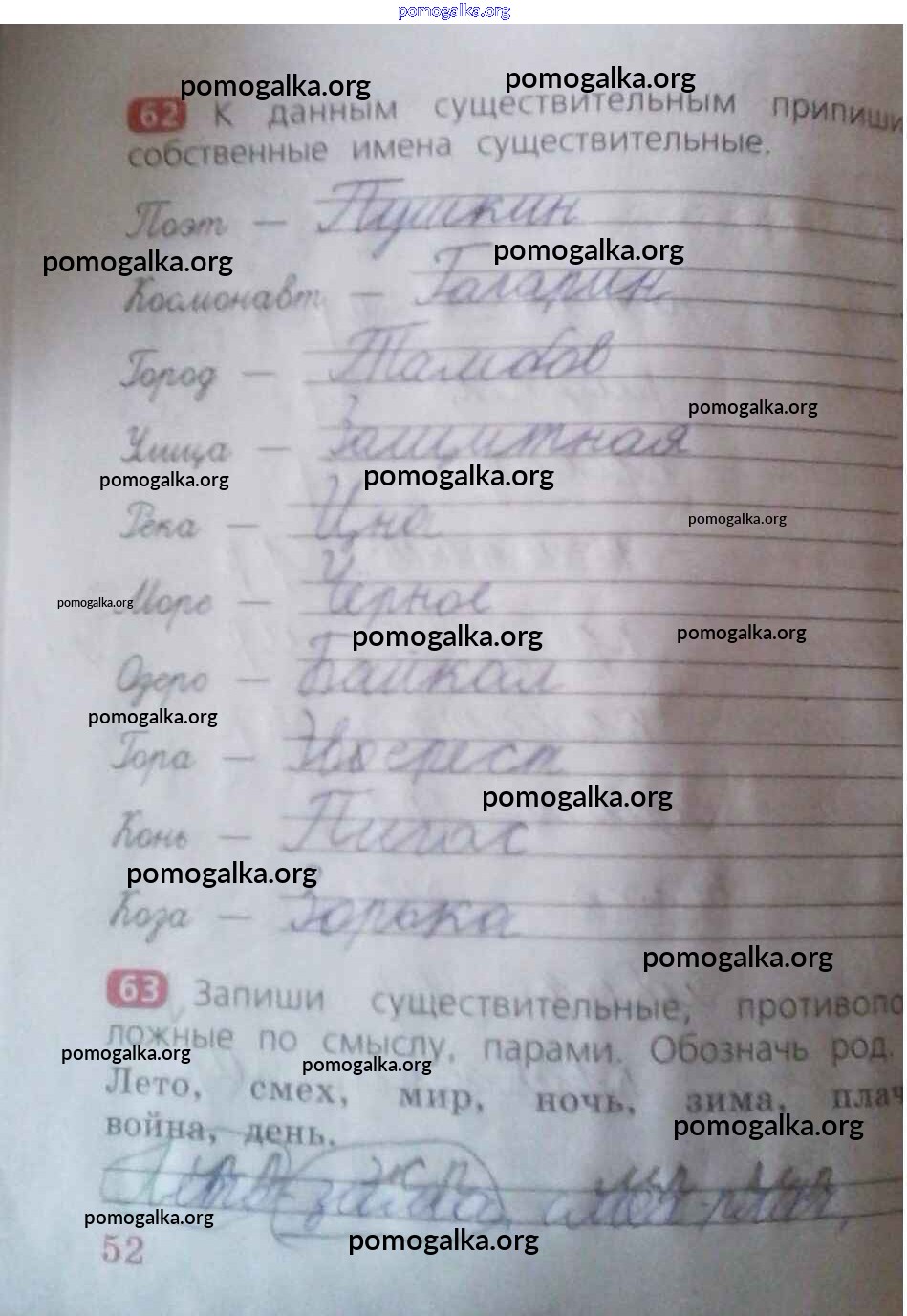 Готовые ответы - Русский язык 2 класс рабочая тетрадь Песняева Н.А. - часть 1. страница 52