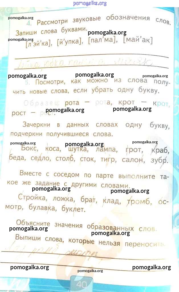 Готовые ответы - Русский язык 2 класс рабочая тетрадь Тихомирова Е.М. (к уч. Канакиной) - часть 1. страница 40