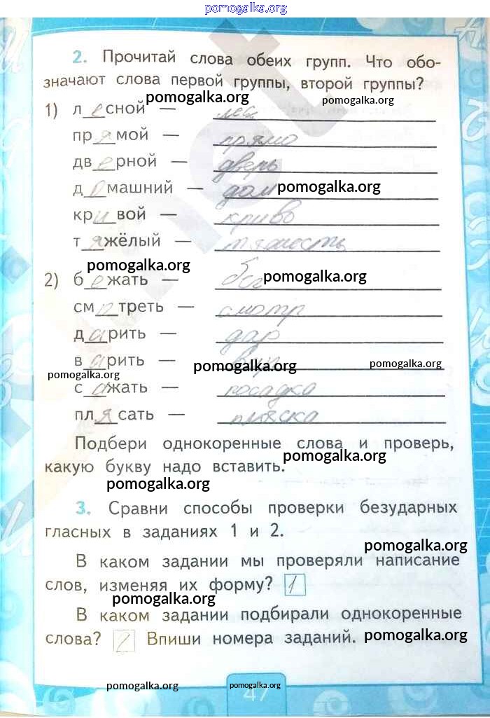 Готовые ответы - Русский язык 2 класс рабочая тетрадь Тихомирова Е.М. (к уч. Канакиной) - часть 1. страница 47
