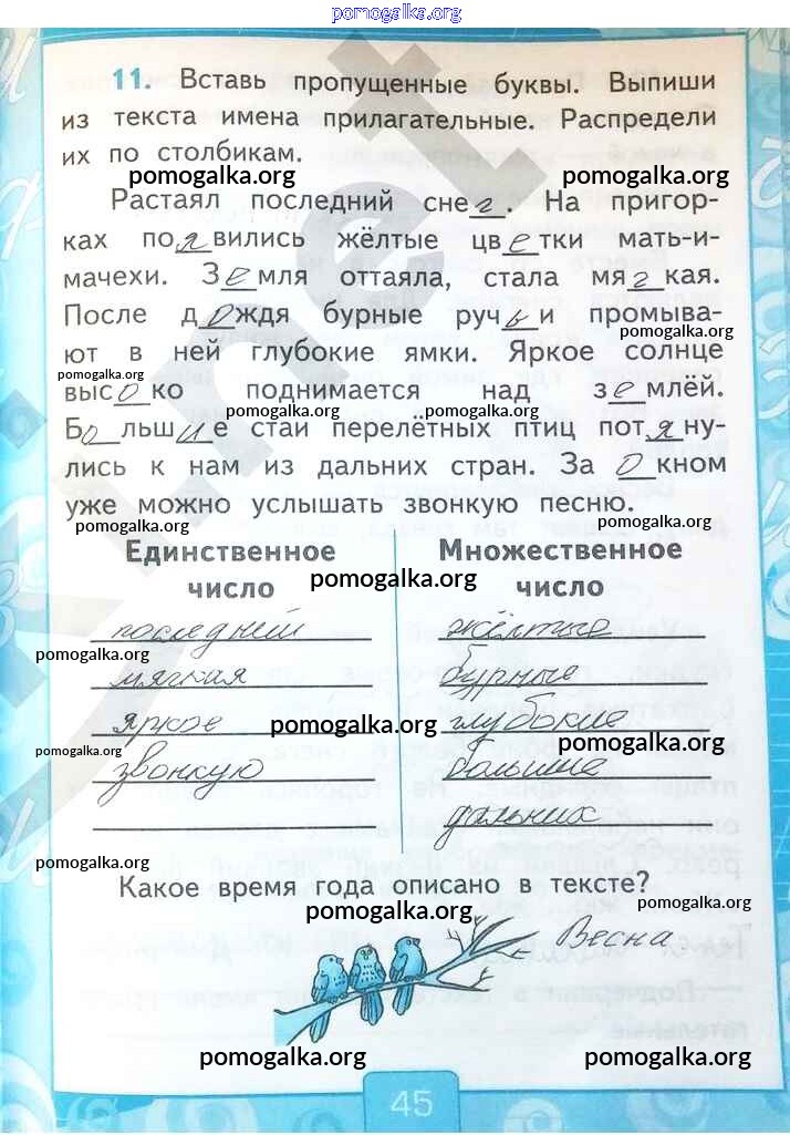 Готовые ответы - Русский язык 2 класс рабочая тетрадь Тихомирова Е.М. (к уч. Канакиной) - часть 2. страница 45
